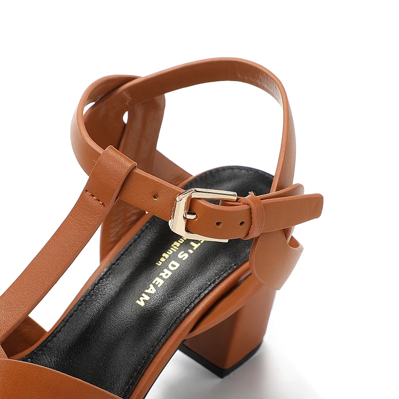Caractéristiques des chaussures : cuir véritable, talons hauts, bout ouvert, couleur unie, chaussures à bouche de poisson, chaussures neuves, chaussures neuves, chaussures à enfiler, bouche peu profonde, boucle, cuir de vache