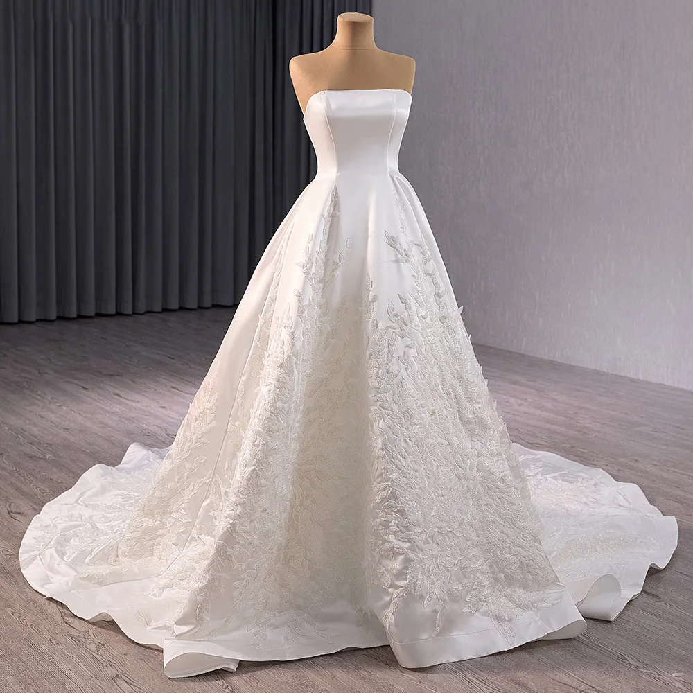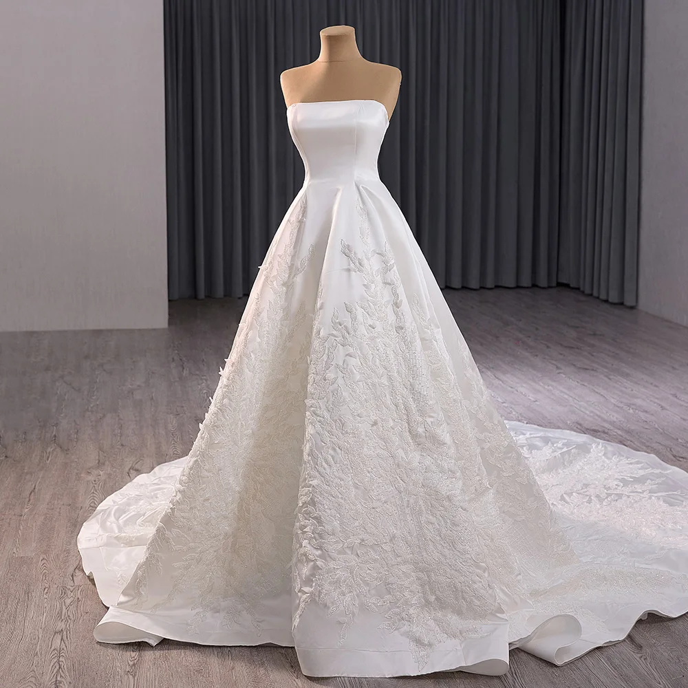 Robe de mariée 2024, nouvelle collection, simple, sans manches, avec appliques, classique, mode, fleur, satin, longueur au sol