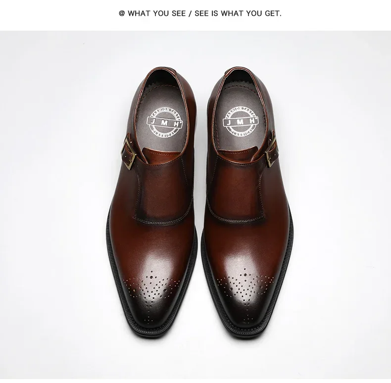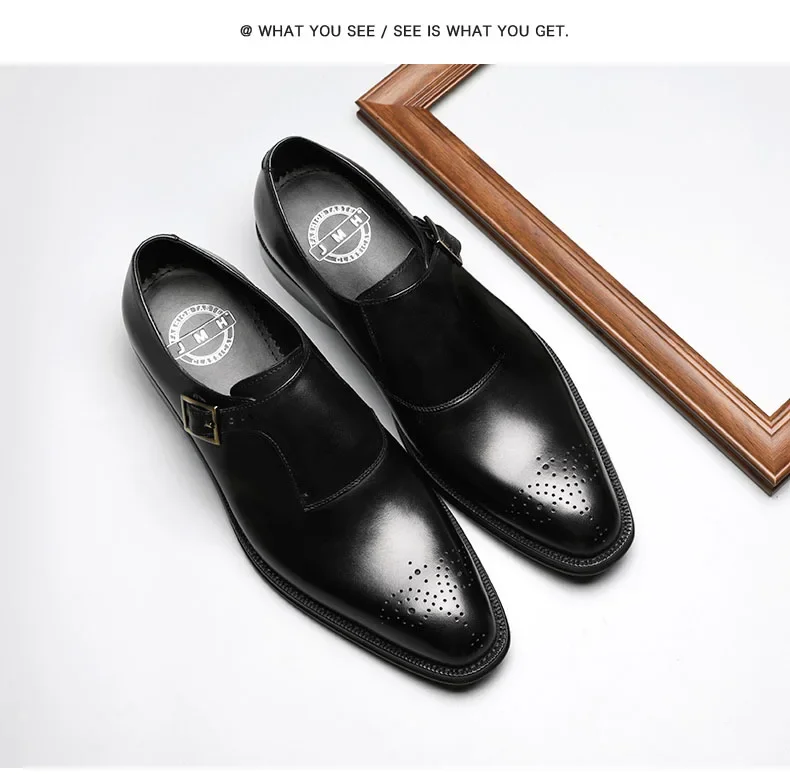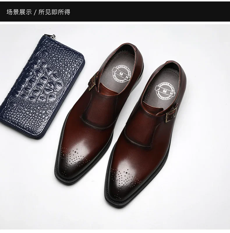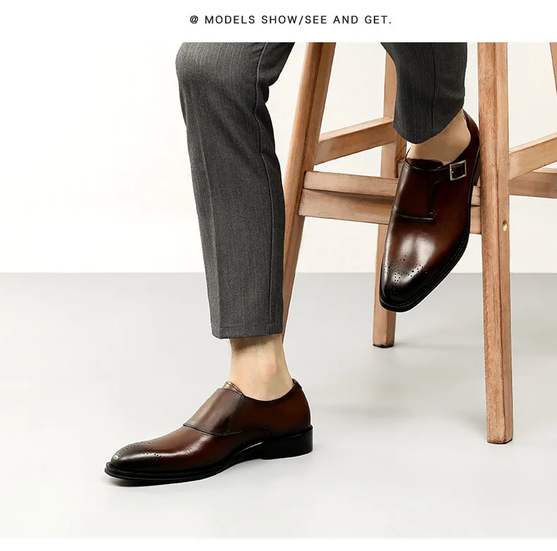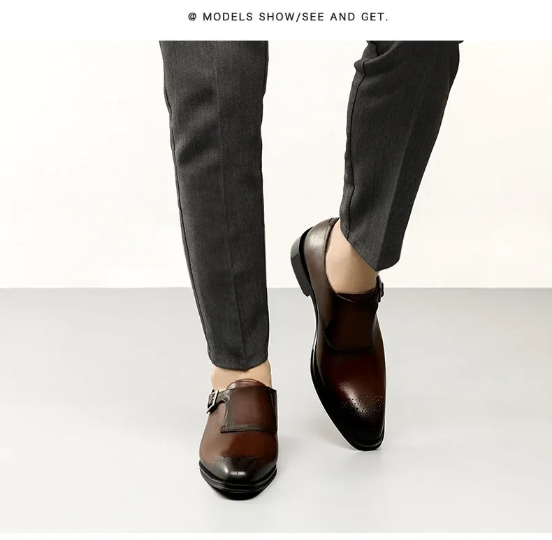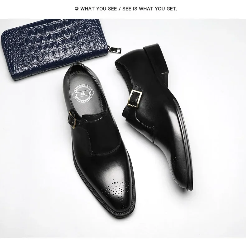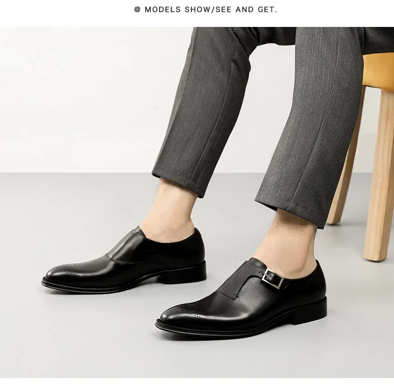 Chaussures habillées en cuir pour hommes, chaussures de mariage à boucle sculptée, modèle 2025