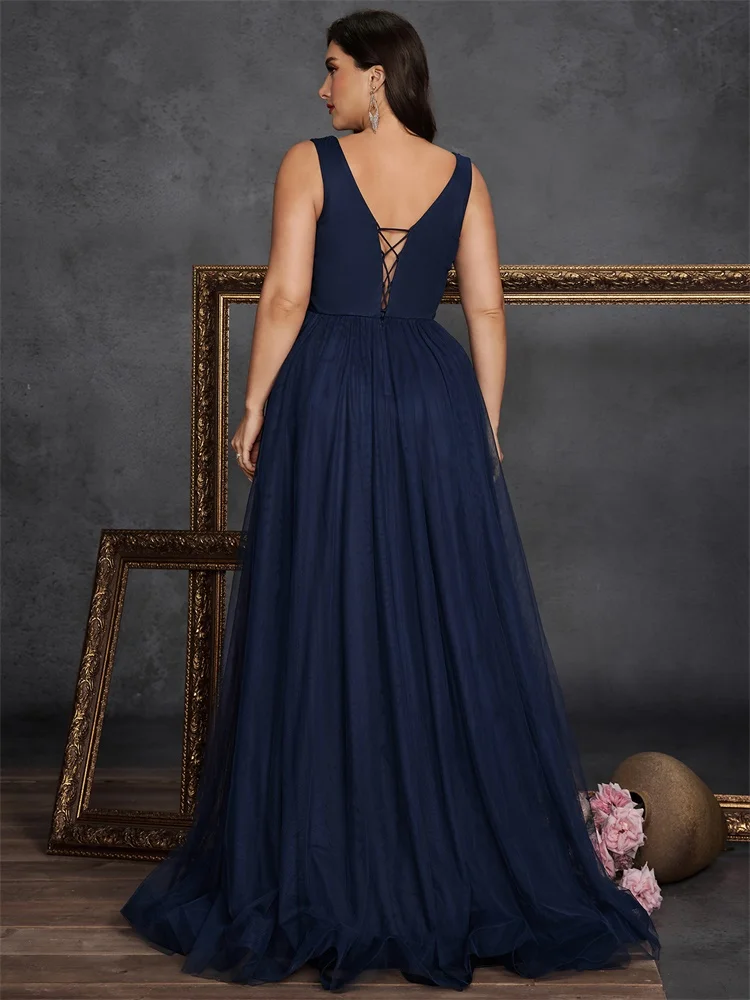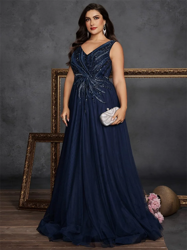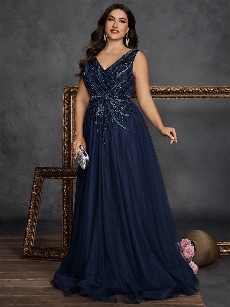 Lucyinlove Robe de soirée grande taille à paillettes et col en V, élégante, sans manches, pour bal de promo, mariage, cocktail, 2025