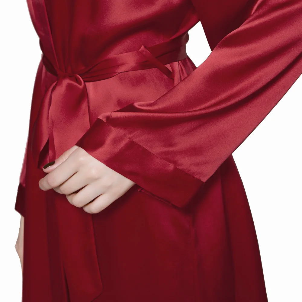 LILYSILK Peignoir en pure soie pour femme, kimono de luxe à manches longues et cravate