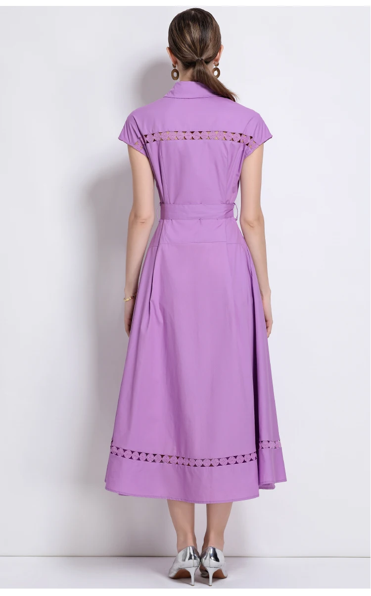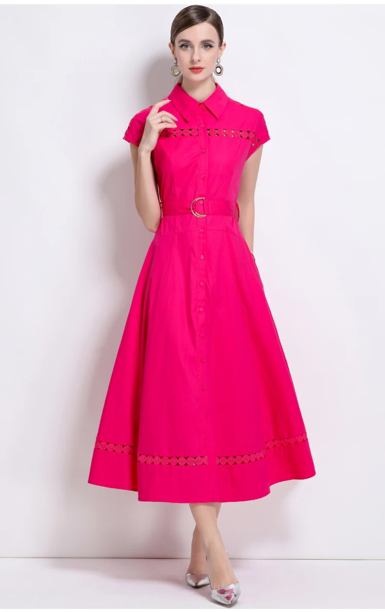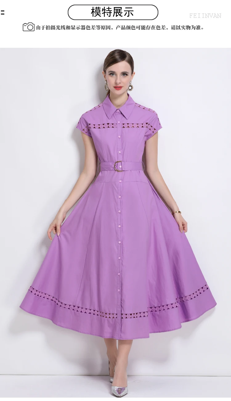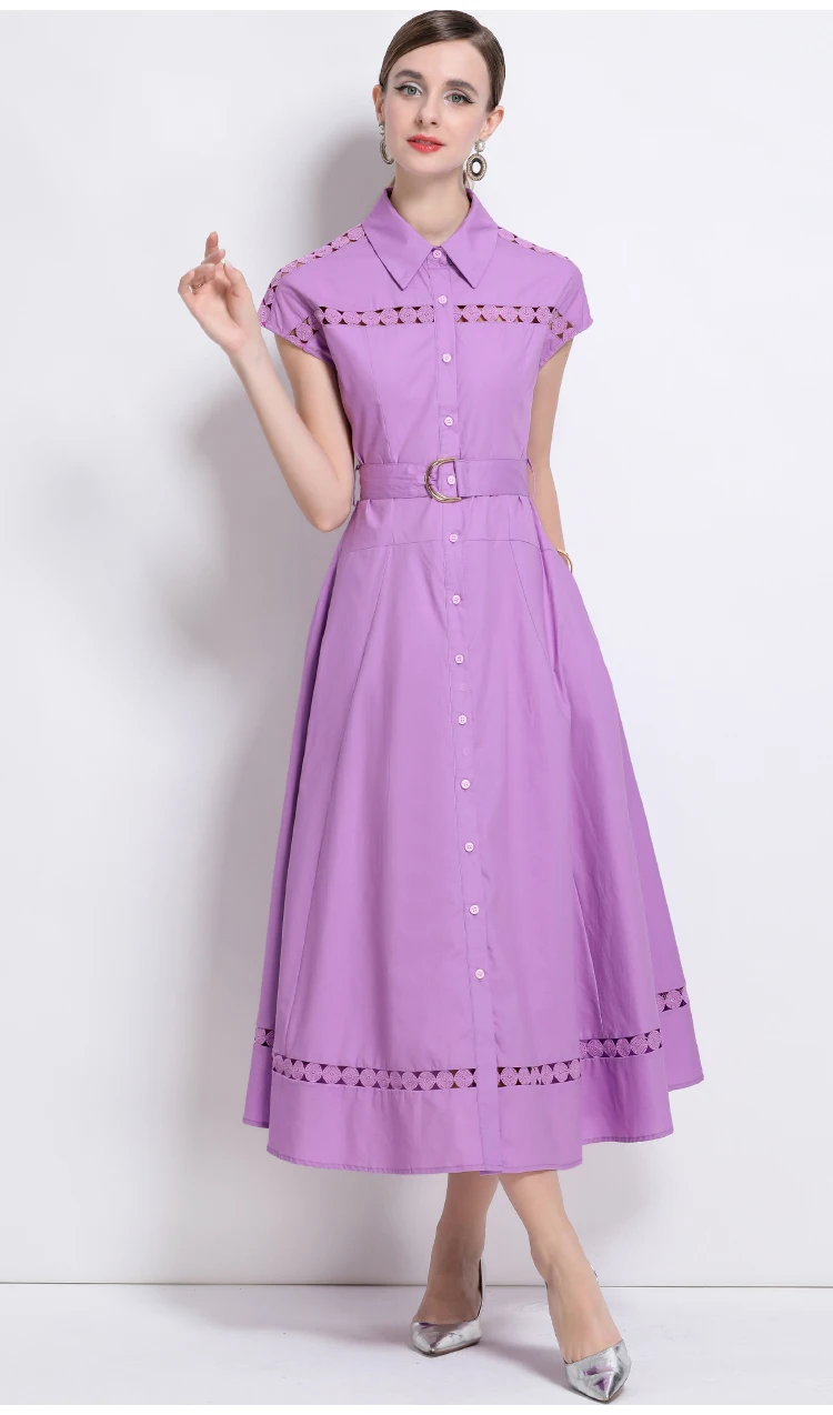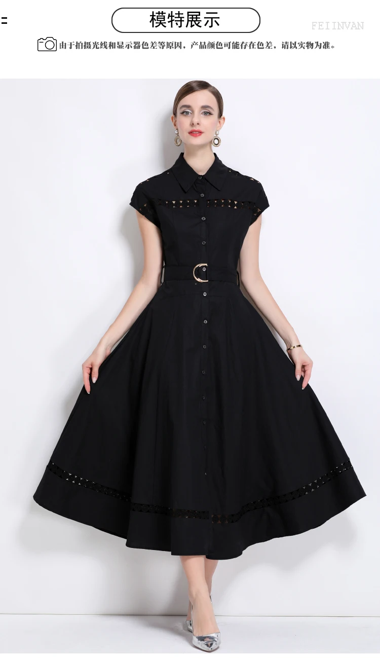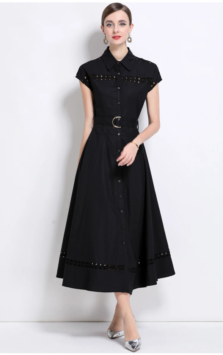Robe longue en coton à manches courtes et col en V pour femme, tenue élégante et décontractée, avec ceinture ajourée