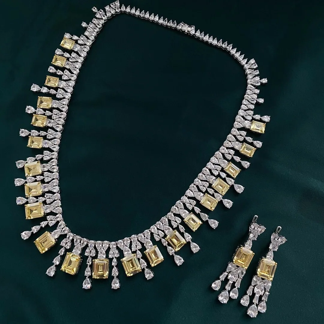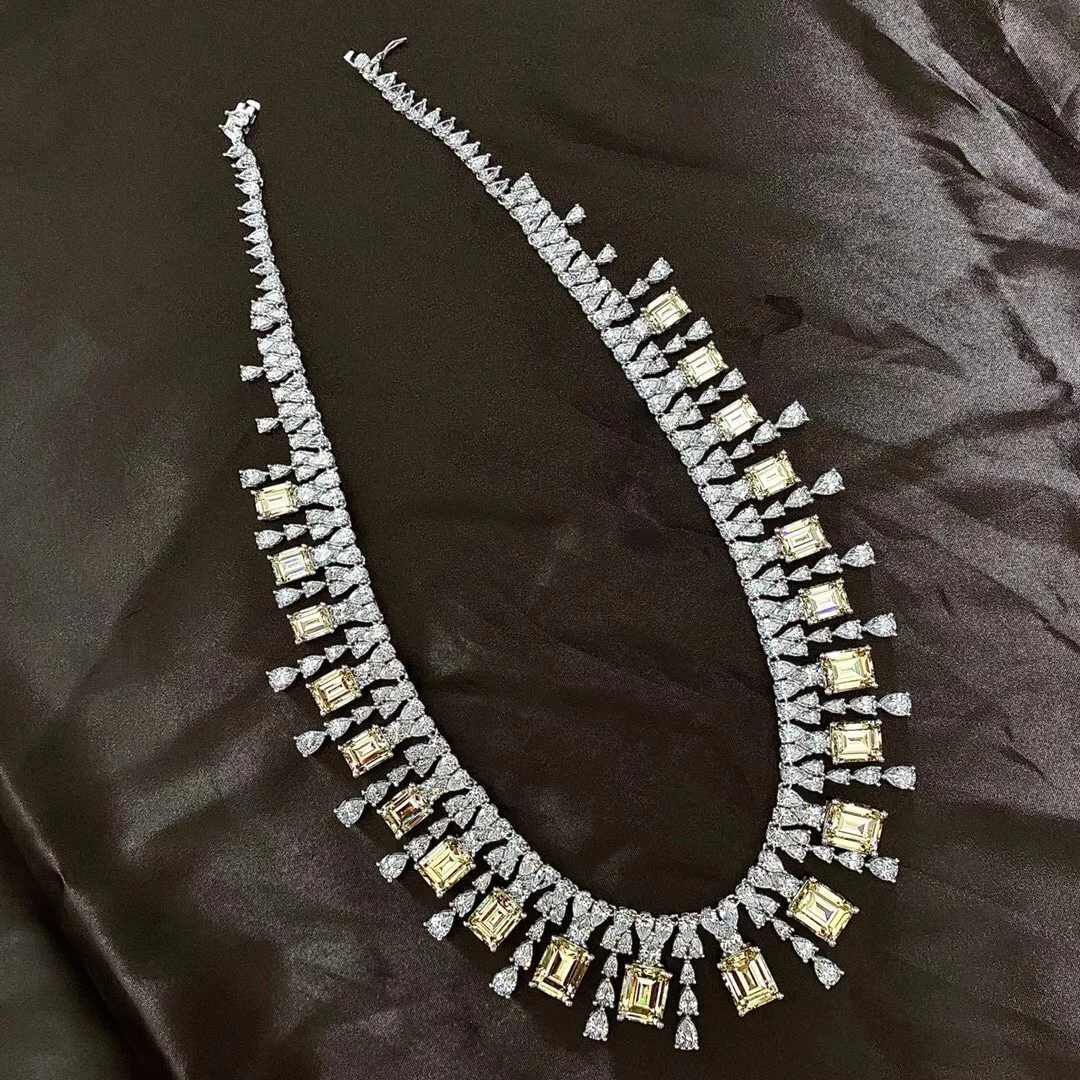 Collier pendentif de luxe Wong Rain en argent sterling 100 % 925, citrine taille émeraude, saphir de laboratoire, diamants, bijoux fins, vente en gros