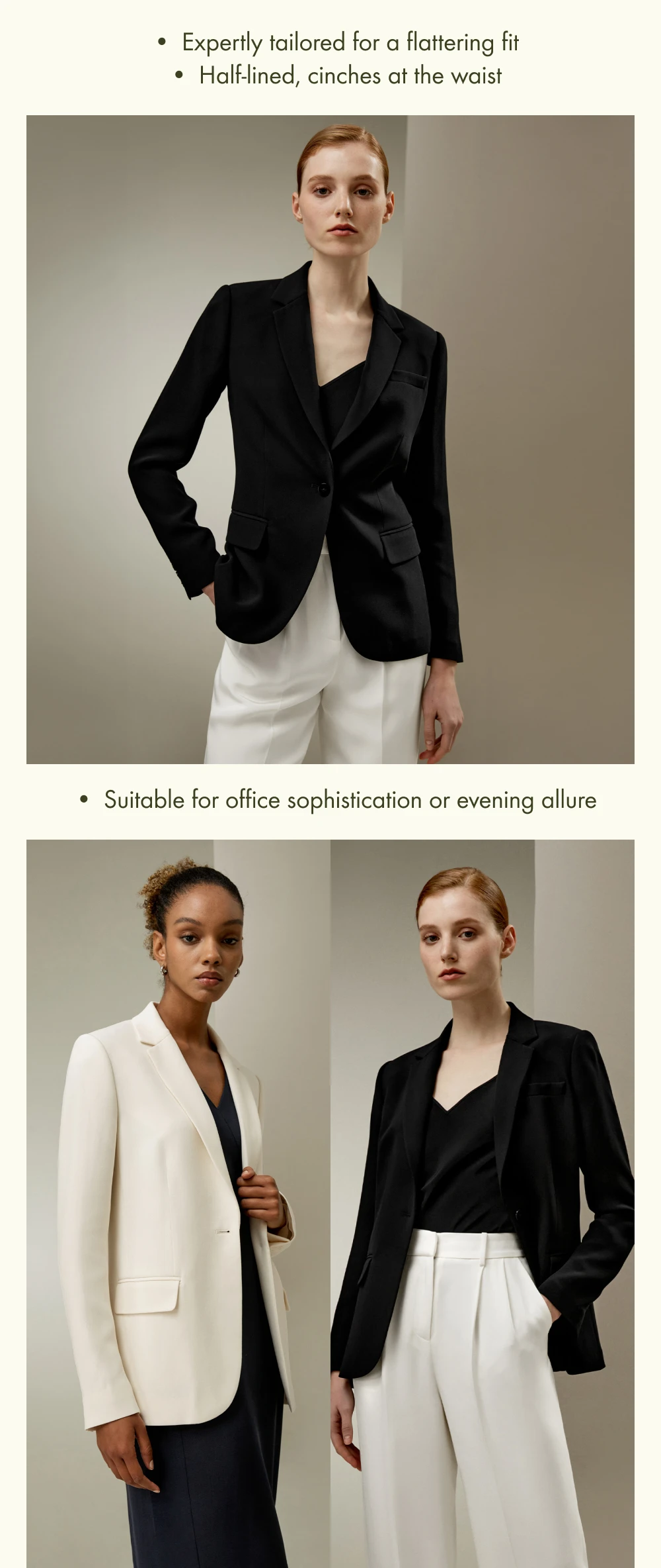 Blazer élégant en crêpe de soie épais pour femme LILYSILK. Manteau classique pour femme avec coupe flatteuse et demi-doublé pour le bureau, les affaires formelles