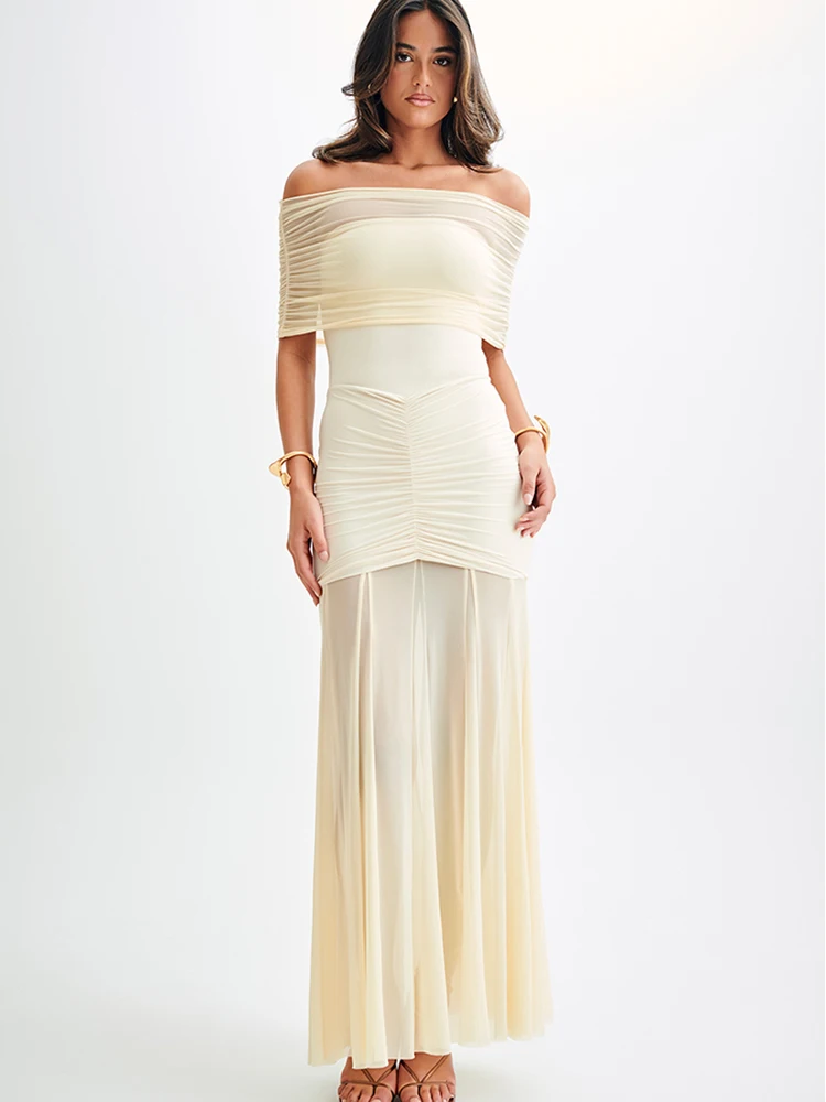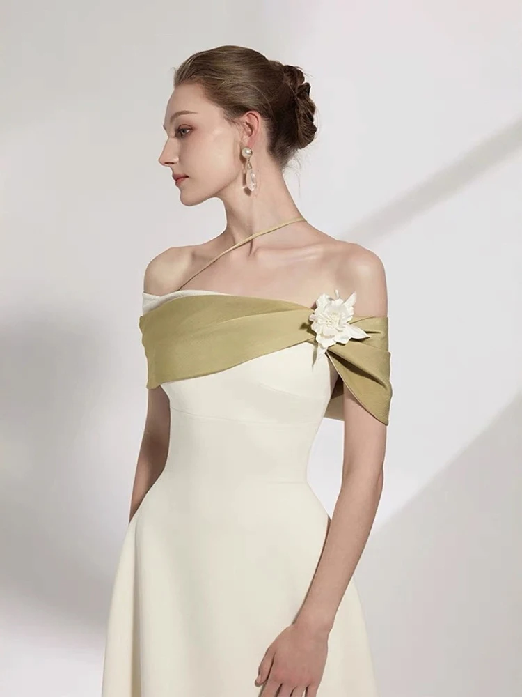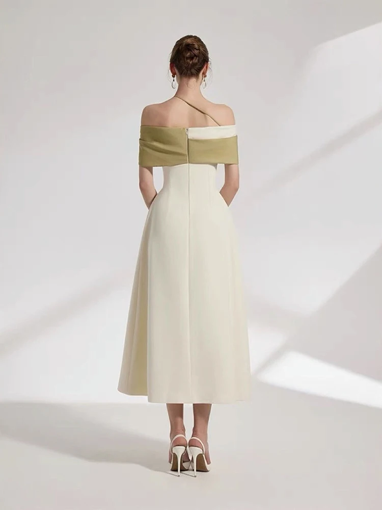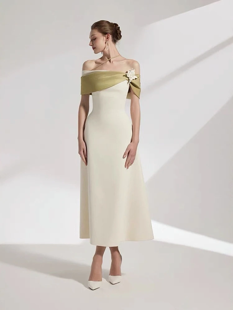 Salut les fashionistas ! 😍 Admirez cette ravissante robe midi à épaules dénudées ! Son tissu de qualité supérieure offre un toucher doux et luxueux. Sa base ivoire douce respire l'élégance, tandis que le drapé vert olive et les délicates fleurs ajoutent une touche d'élégance unique.