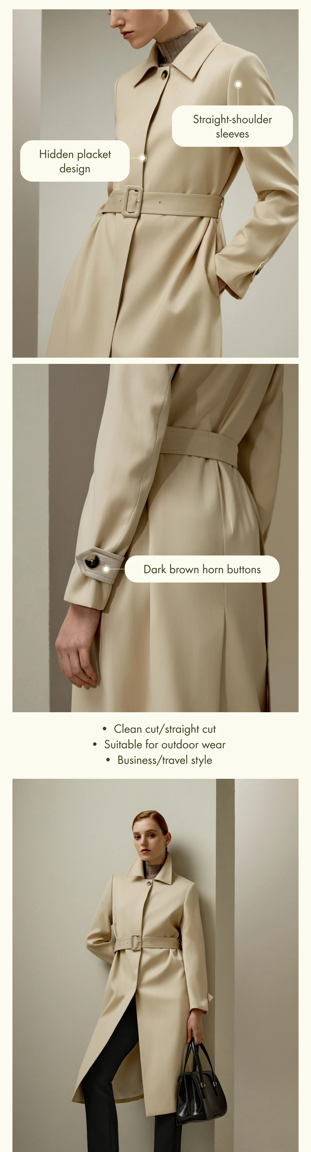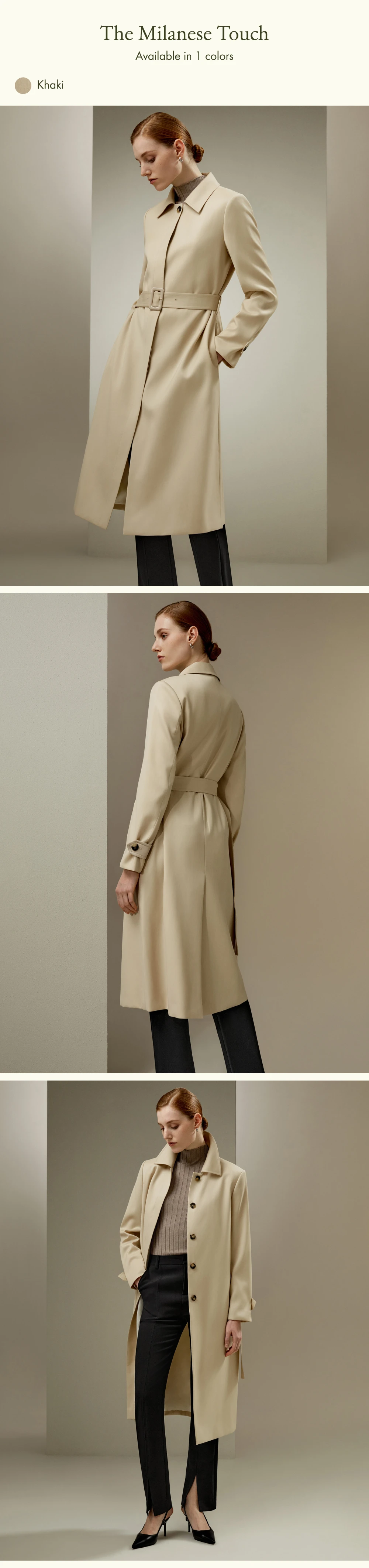 Trench-coat LILYSILK en mélange de soie et de laine pour femme, vêtement d'extérieur classique et déperlant avec ceinture à nouer pour de nombreuses occasions