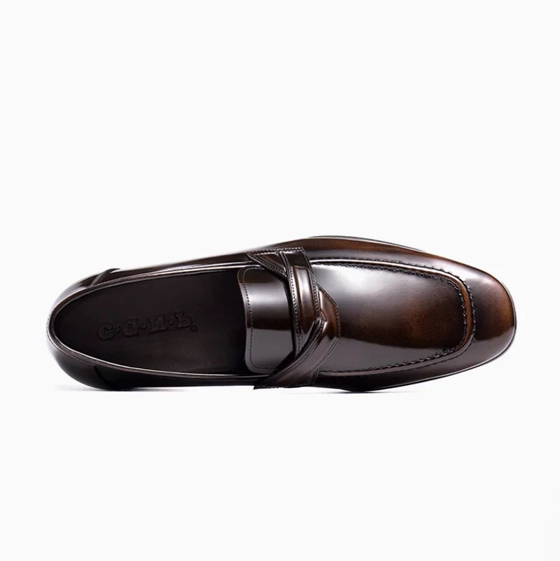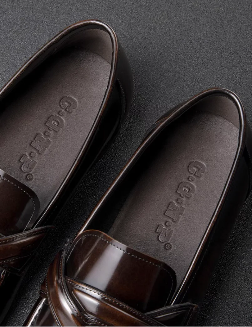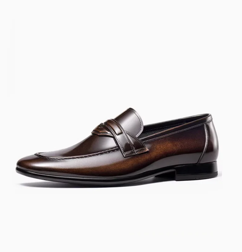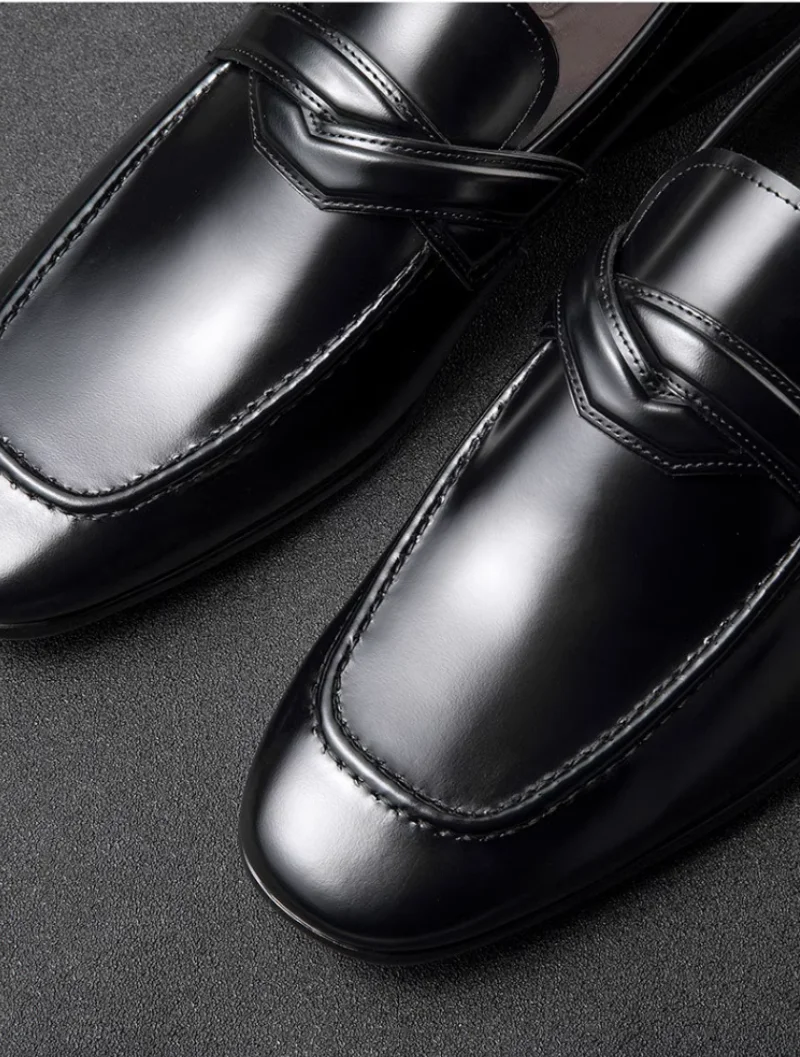 Nouvelles chaussures d'affaires en cuir de vachette à couche supérieure pour hommes, chaussures décontractées britanniques en cuir véritable pour hommes, surface brillante respirante à enfiler
