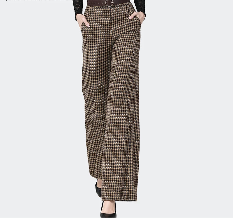 Crafted from premium wool, these vintage-inspired wide trousers offer both timeless style and exceptional comfort. Designed for a flattering fit, they provide warmth and breathability, making them ideal for cooler seasons. Their wide-leg silhouette enhances movement and adds a sophisticated touch to any wardrobe, perfect for those seeking classic elegance with expert tailoring.