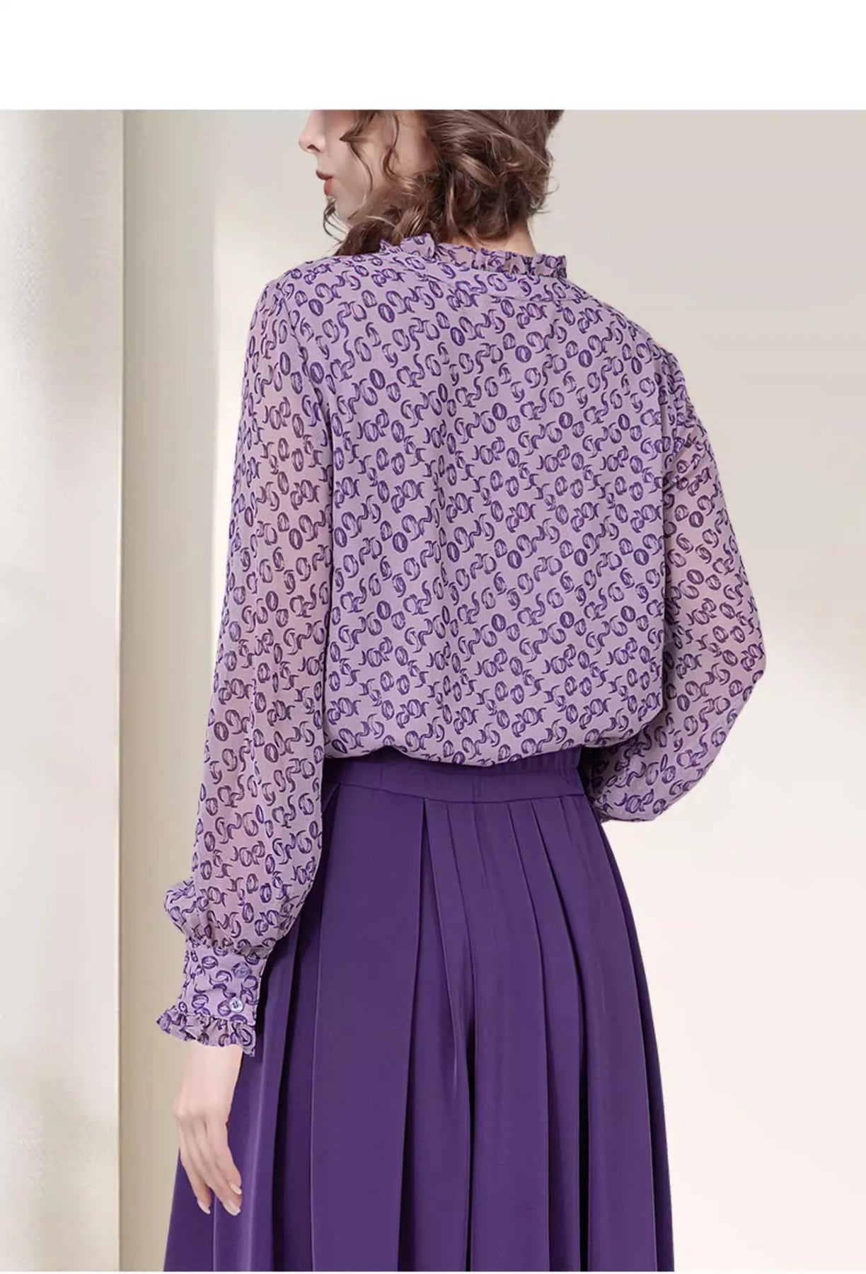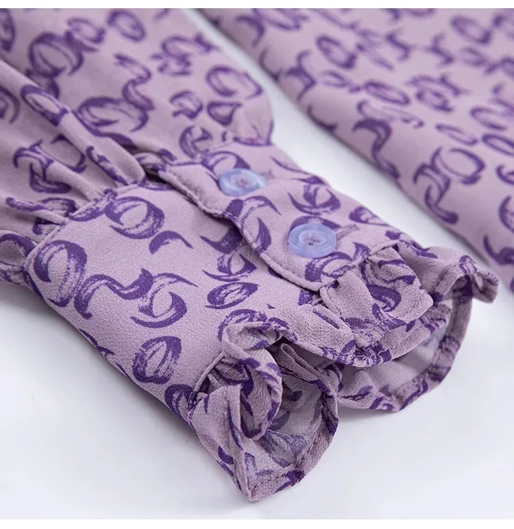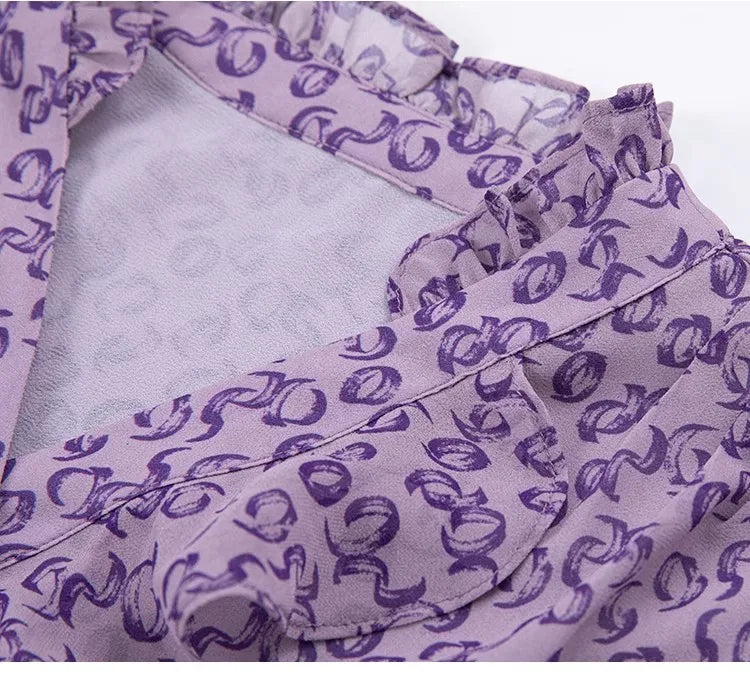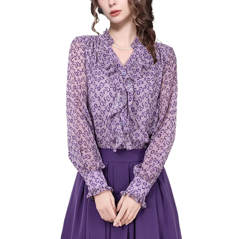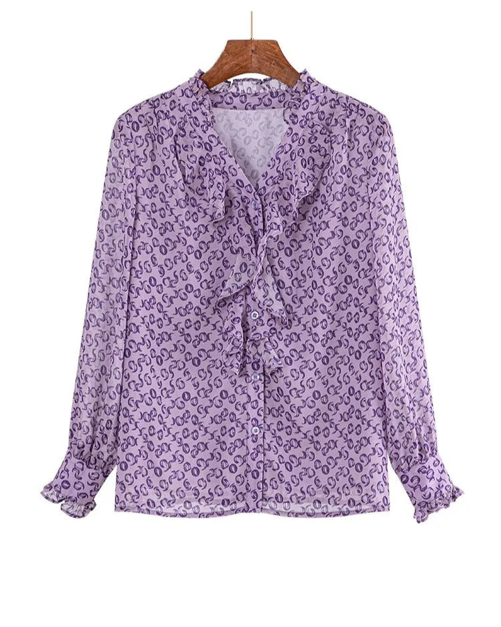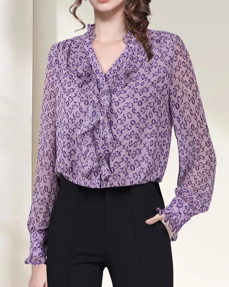 Casual Floral Printed Ruffle Chiffon Top
