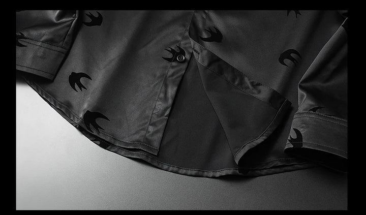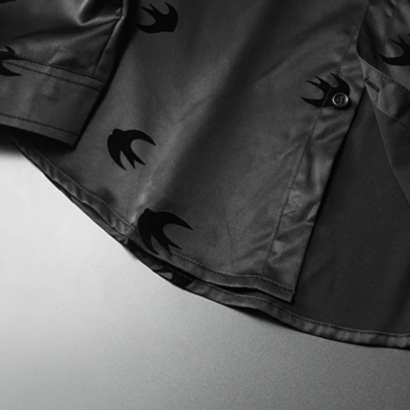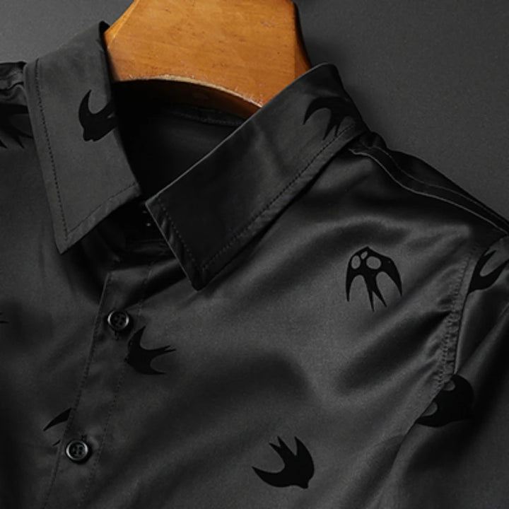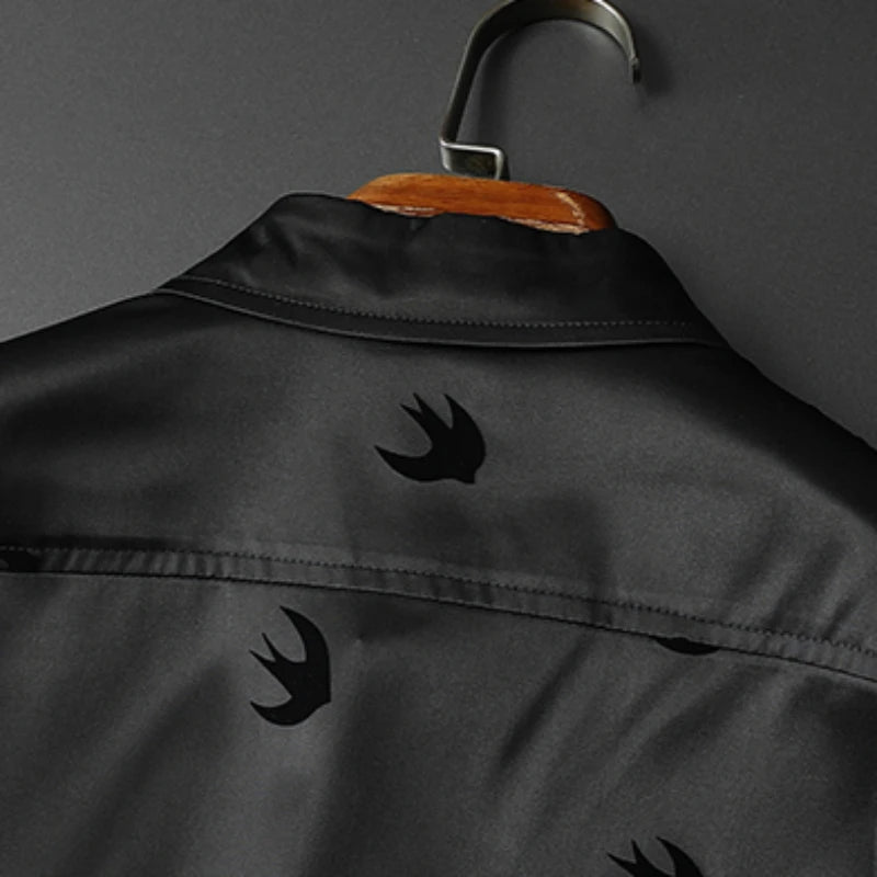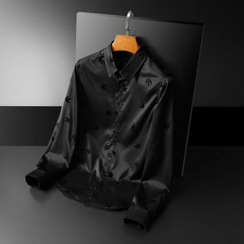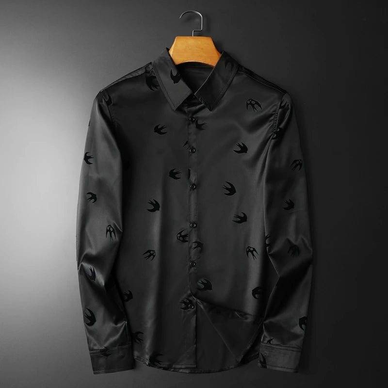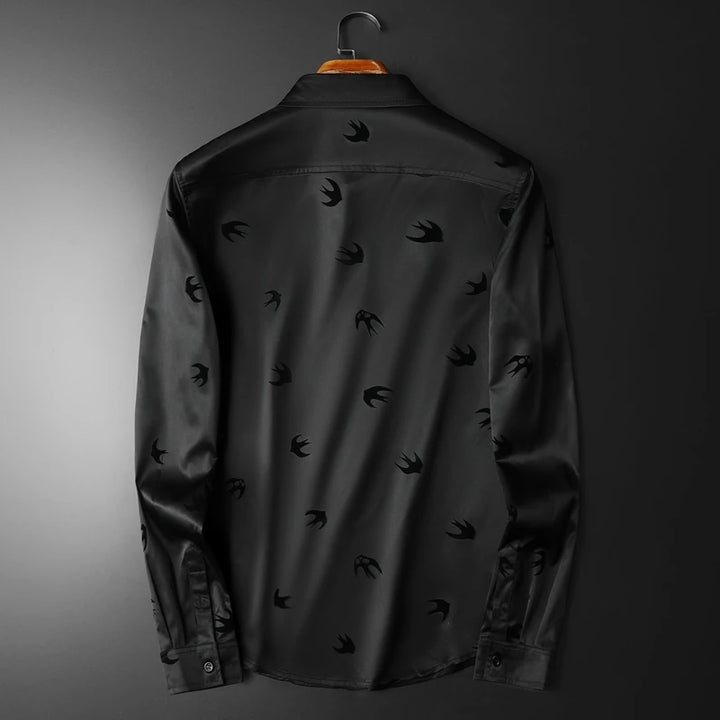 Expertly crafted with a classic flocking print, this men's dress shirt elevates any outfit with sophistication and style. The unique print adds a touch of personality while the high-quality fabric ensures comfort and durability. Perfect for any occasion, this shirt is a must-have for any fashion-forward man.