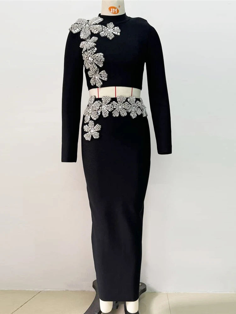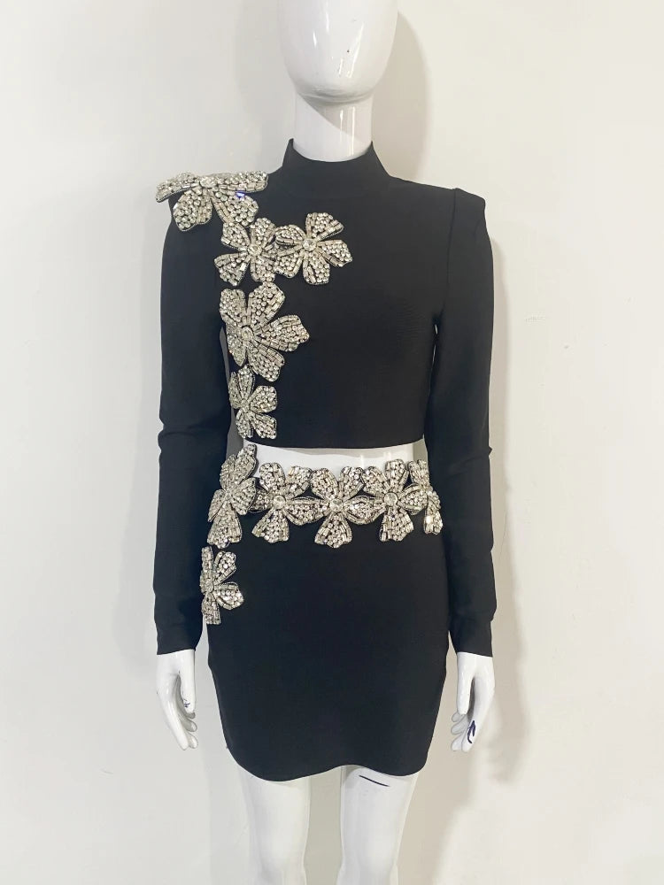 Enhance your curves with our Diamond Bandage Bodycon Set. Made with high-quality materials, this set shapes and flatters your figure for a confident and sleek look. The diamond pattern adds a touch of elegance, making it perfect for a night out or special occasion.