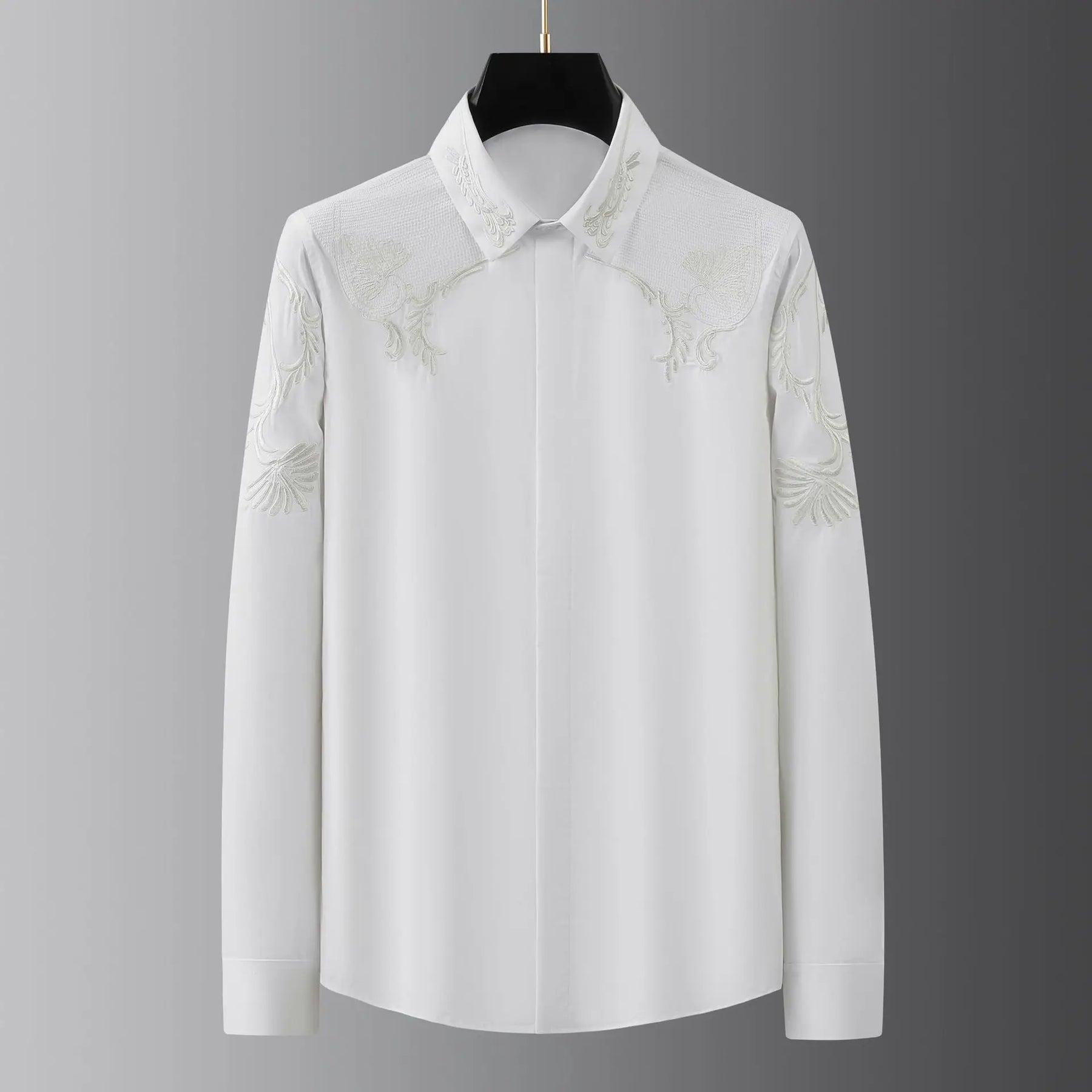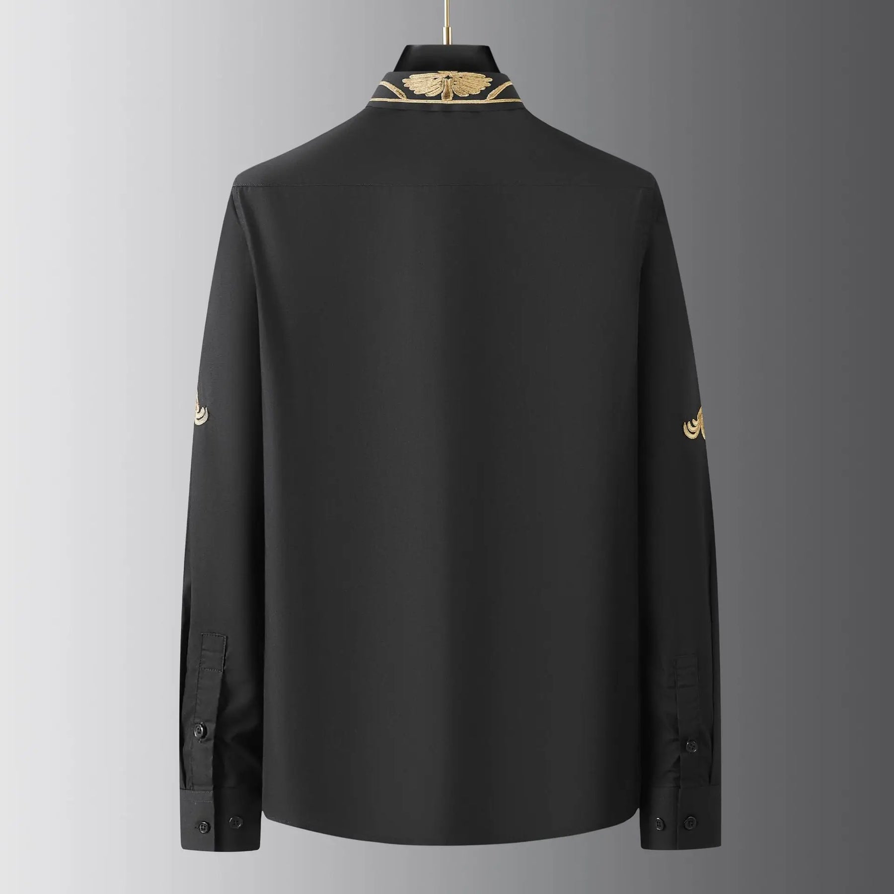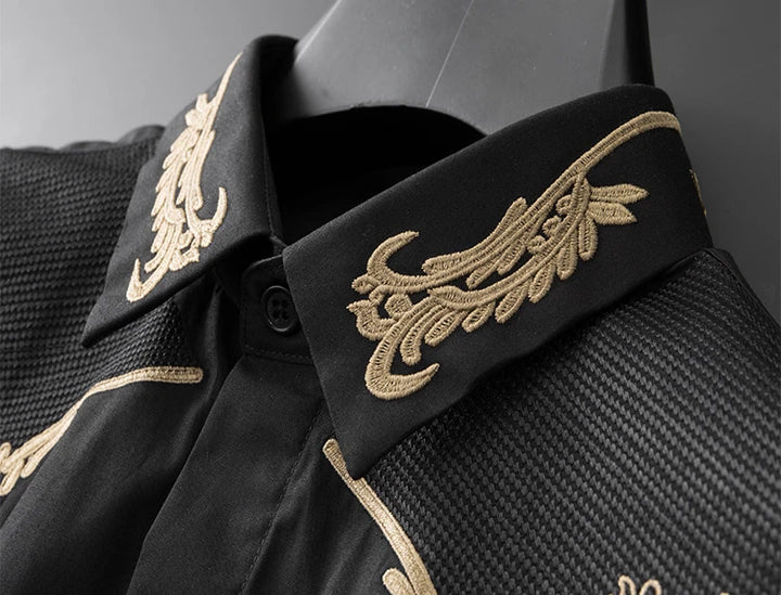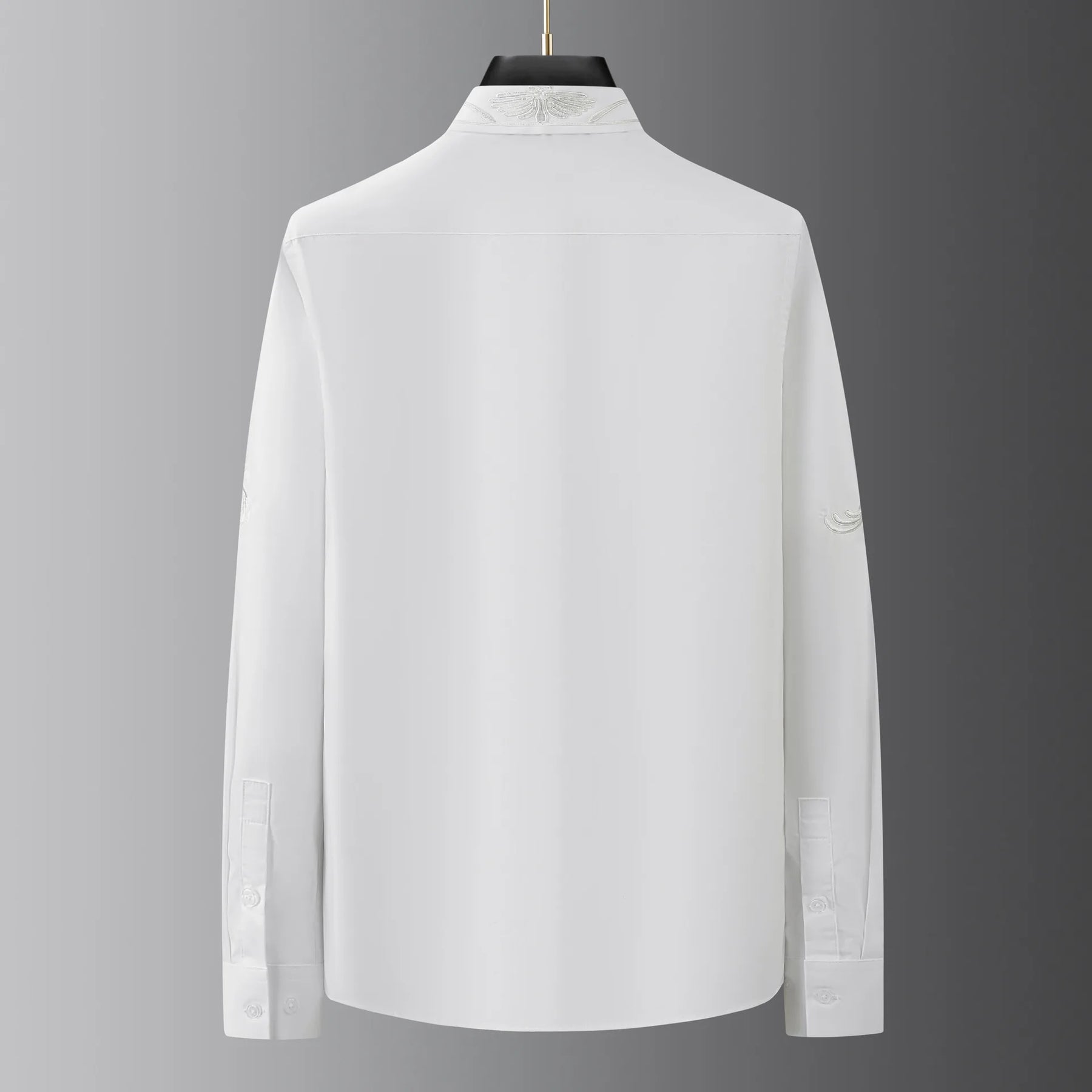 This Elegant Embroidery Men's Shirt boasts intricate embroidery details that elevate its sophisticated design. Crafted with high-quality materials, it offers both comfort and style. Perfect for any formal occasion, this shirt is a must-have for any man looking to make a statement.