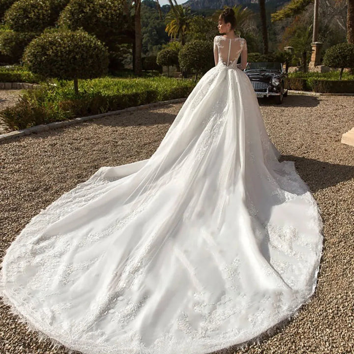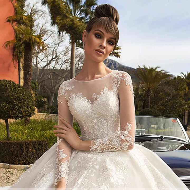 Crafted from the finest tulle, this exquisite wedding gown elevates the elegance of any bride. The intricate details and delicate fabric create a stunning silhouette, making this dress perfect for any fairytale wedding. A must-have for brides seeking a timeless and sophisticated look.