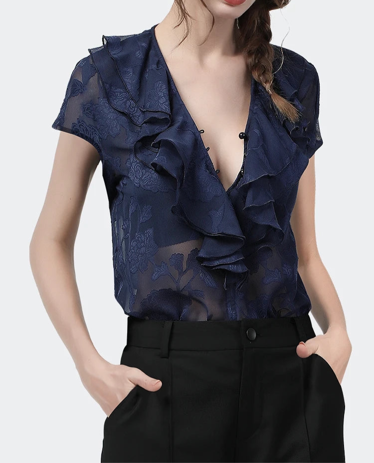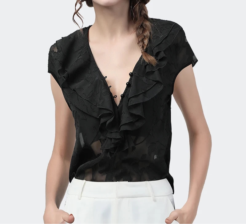 Glamorous See Through Ruffles Blouse