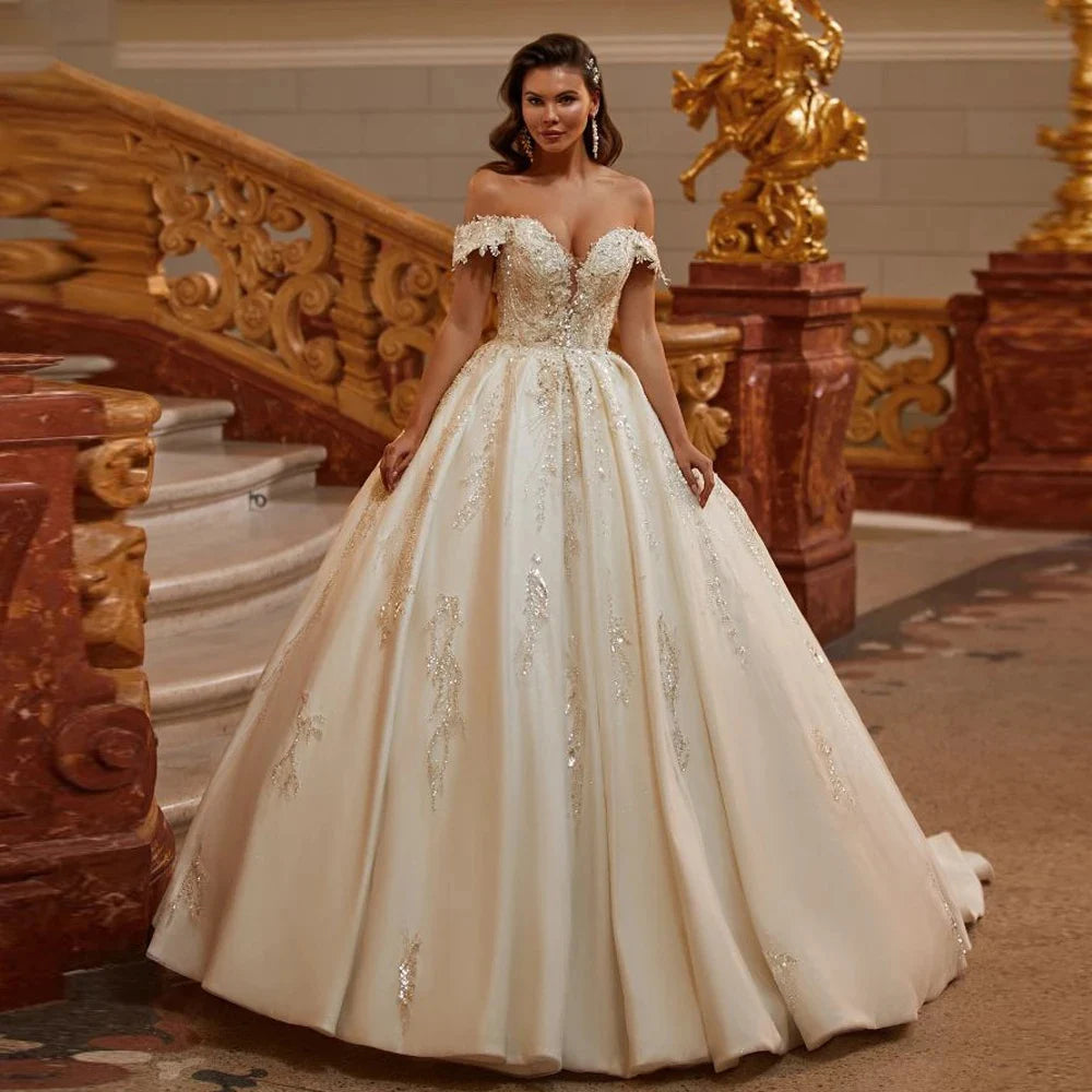 This glamorous off-shoulder wedding dress is a must-have for any bride-to-be. With its elegant and modern design, it will make you feel like a true princess on your special day. Its off-shoulder style adds a touch of sophistication, while the impeccable tailoring and high-quality materials ensure a perfect fit and comfort all day long. Make a statement and turn heads with this stunning wedding dress.