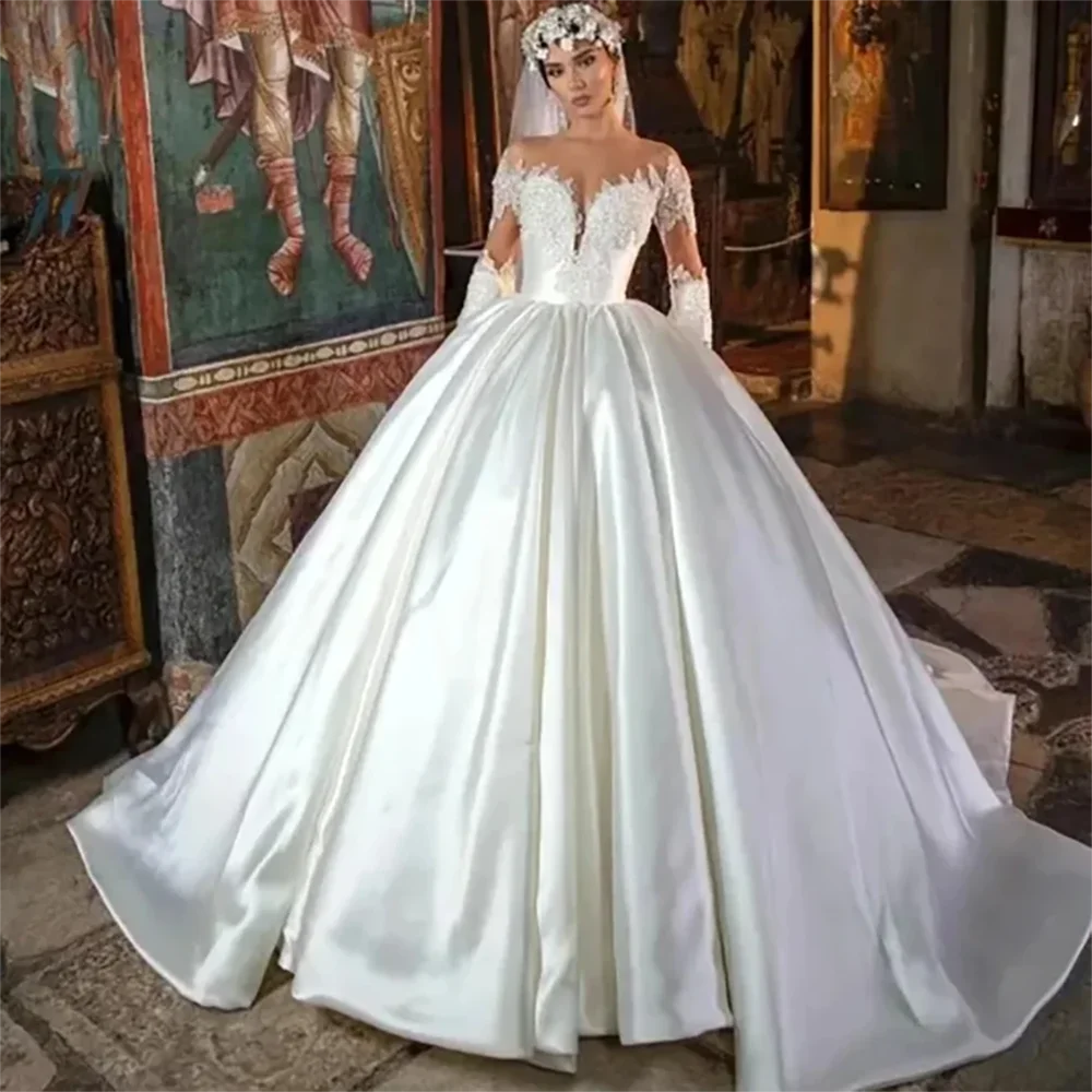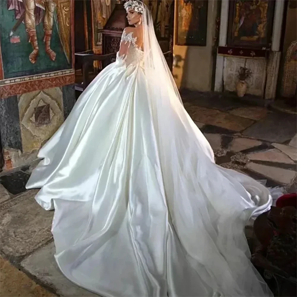 This stunning wedding dress is made with soft, luxurious satin, creating a beautiful and elegant look for any bride. The high-quality fabric drapes gracefully and is comfortable to wear for hours. The perfect choice for a memorable and timeless wedding day.
