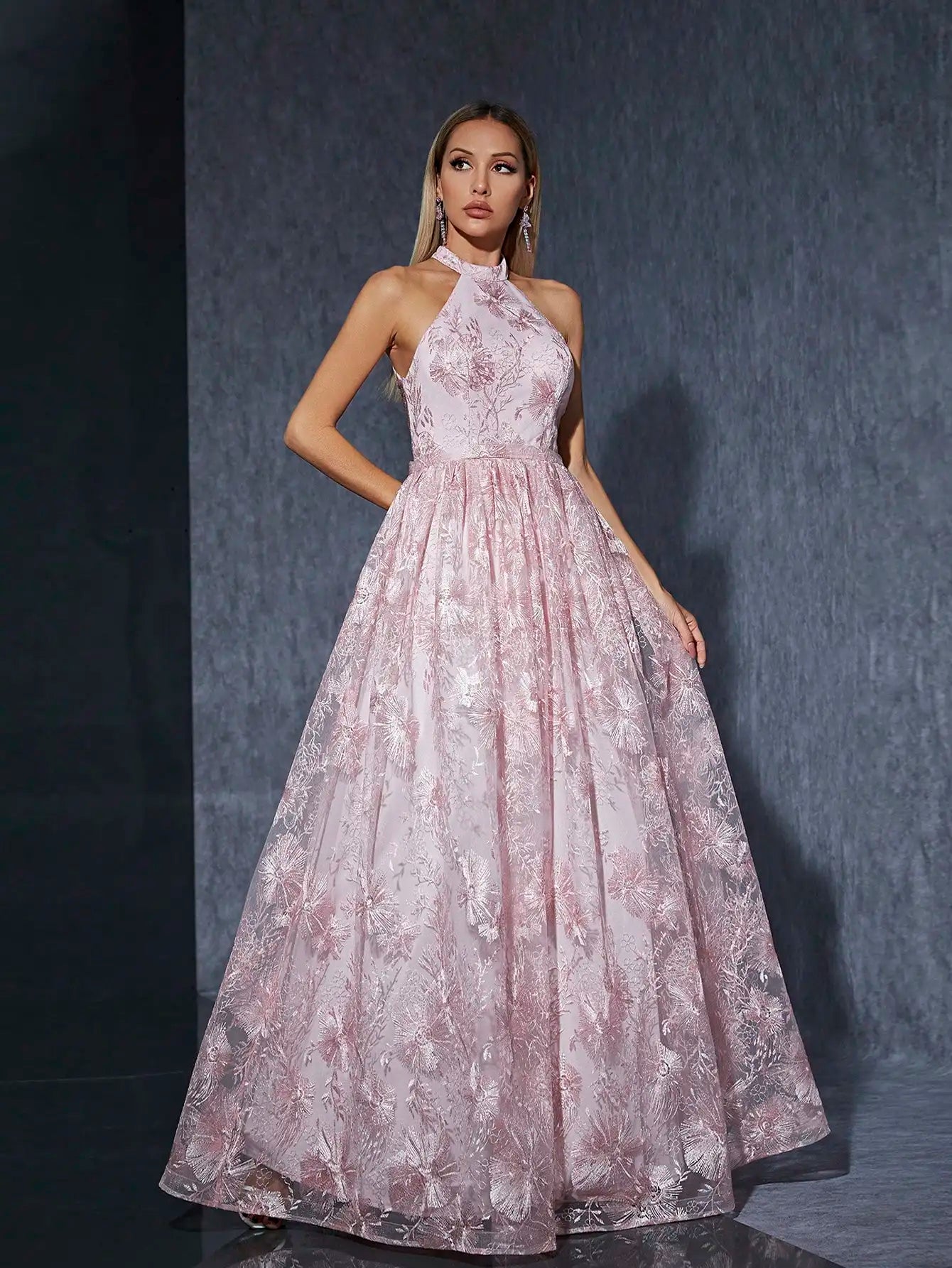 This high-end sleeveless lace women's gown exudes elegance and sophistication. Made with delicate lace and expertly crafted, it offers a timeless and luxurious look. The perfect choice for formal occasions and special events, it will make you feel confident and stylish.