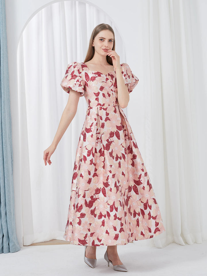 This lovely Jacquard women's gown is a must-have for any sophisticated wardrobe. Made with high-quality materials, its intricate jacquard pattern adds a touch of elegance and charm to any occasion. With its classic silhouette and flattering fit, this gown is perfect for making a statement at any formal event. Elevate your style with this stunning gown.