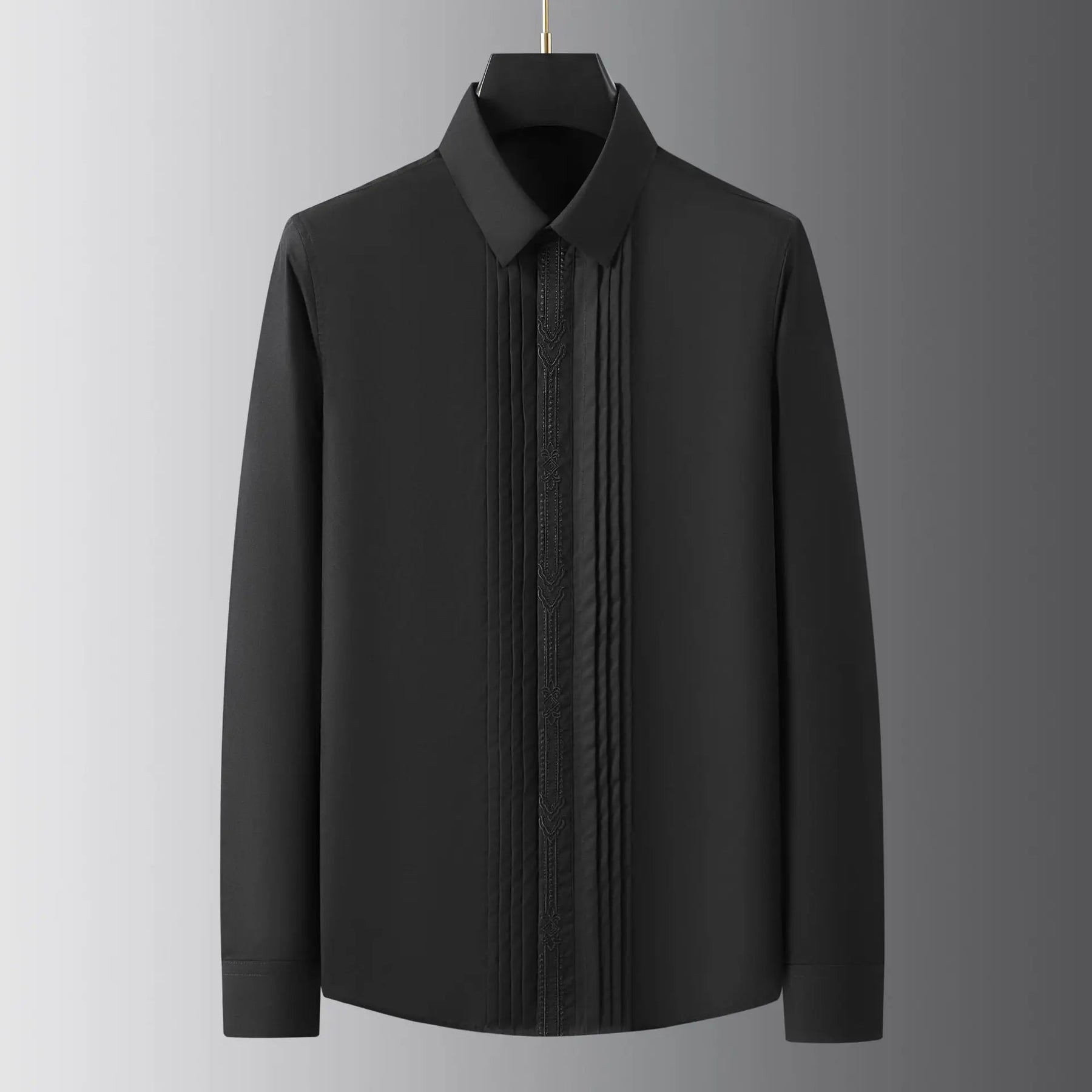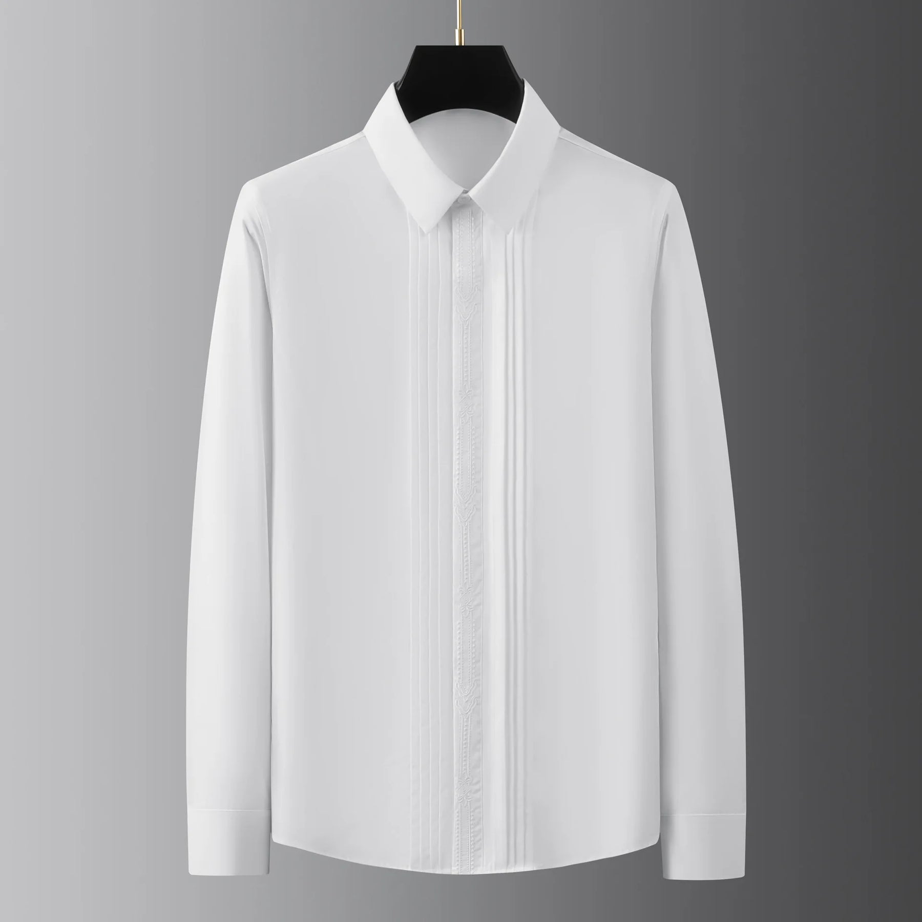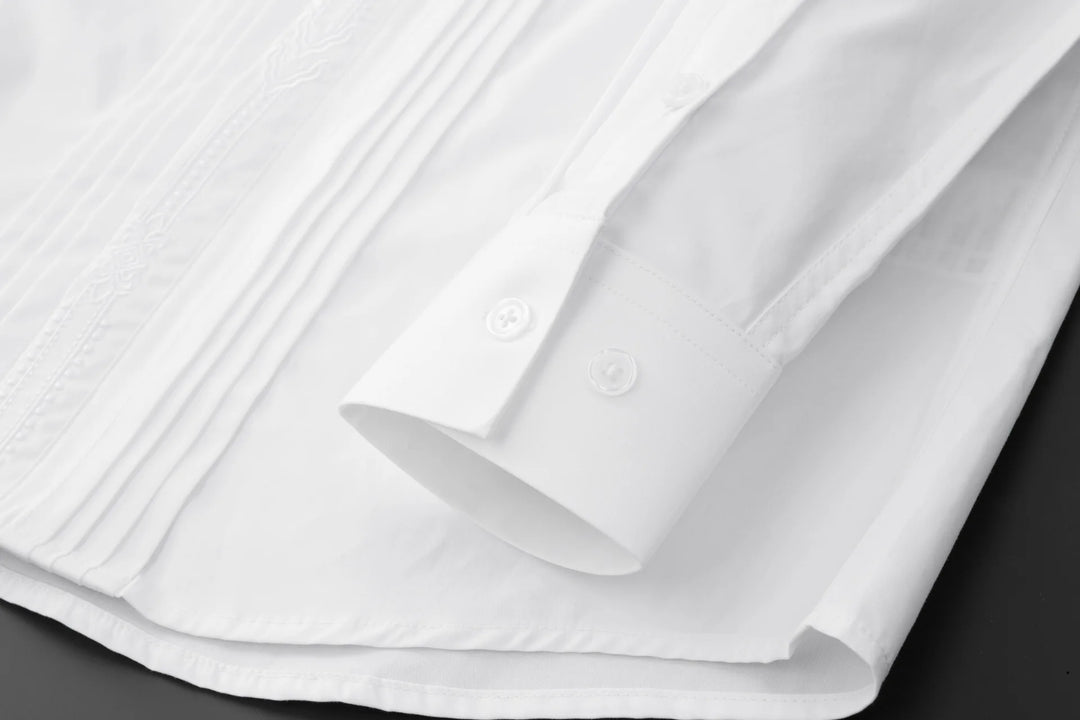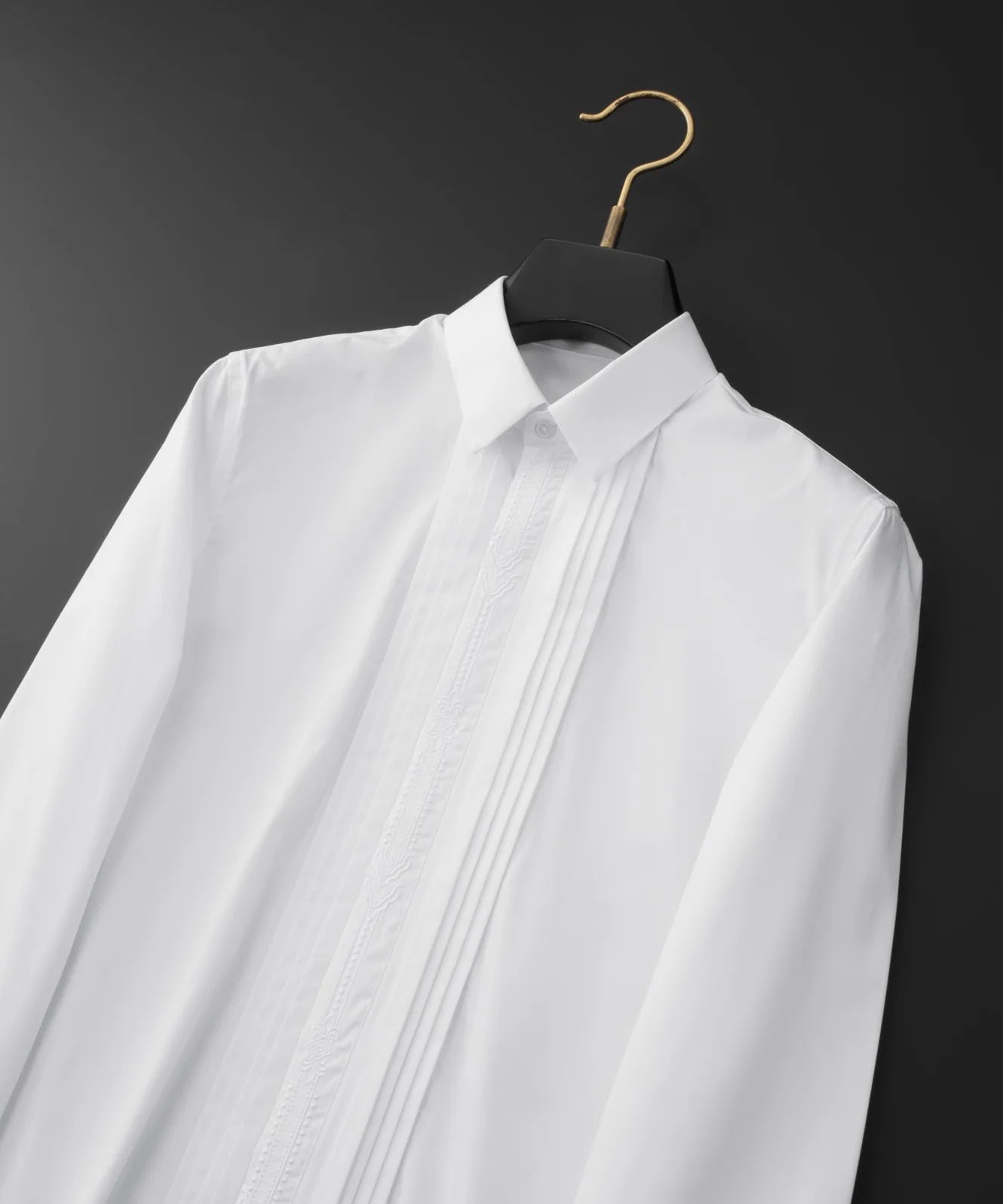 Expertly crafted with refined embroidery, this men's slim shirt is the perfect addition to your wardrobe. Made with high-quality materials, it offers a sleek and sophisticated look while providing a comfortable fit. Enhance your style and make a statement with this must-have shirt.