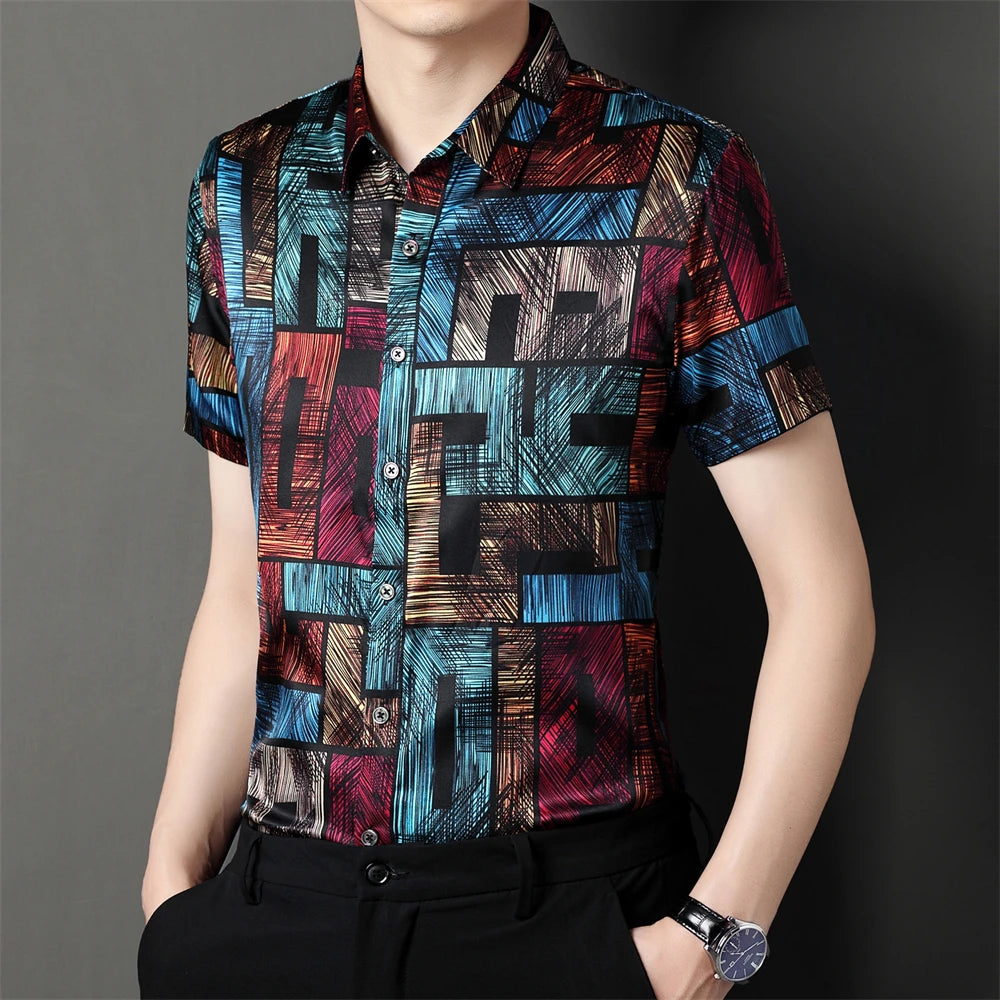 Introducing our Refined Vintage Print Silk Men's Shirt - the perfect combination of classic and modern. Made with luxurious silk, this shirt features a vintage-inspired print that adds a touch of sophistication to any outfit. Elevate your style and turn heads with this timeless piece.