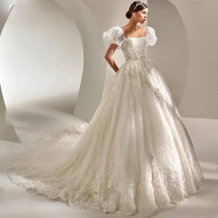 • Accessories: A delicate tiara or pearl drop earrings add an elegant touch. A lace-trimmed veil enhances the romantic appeal.