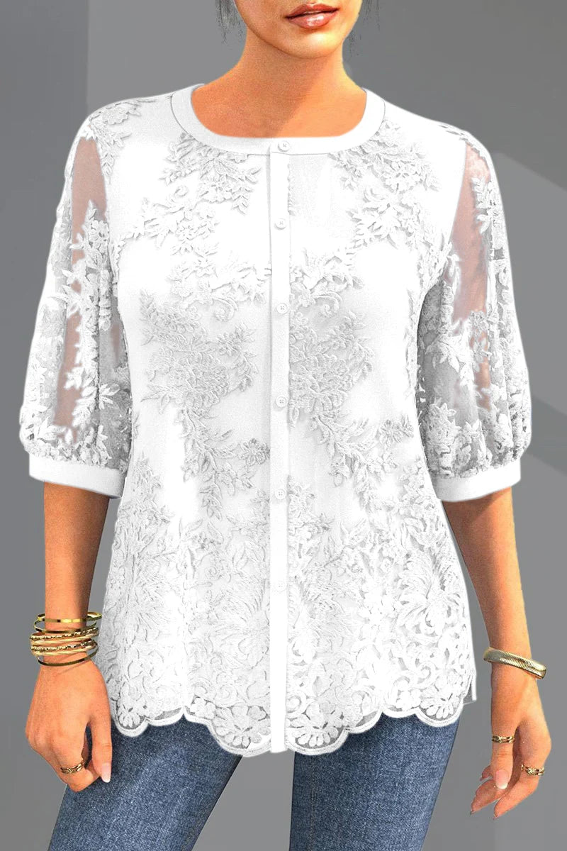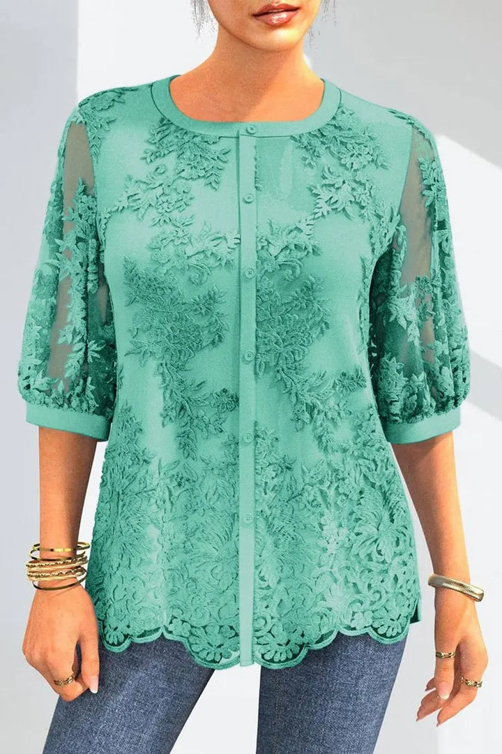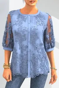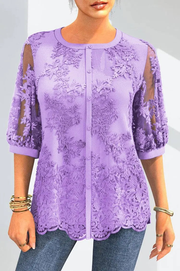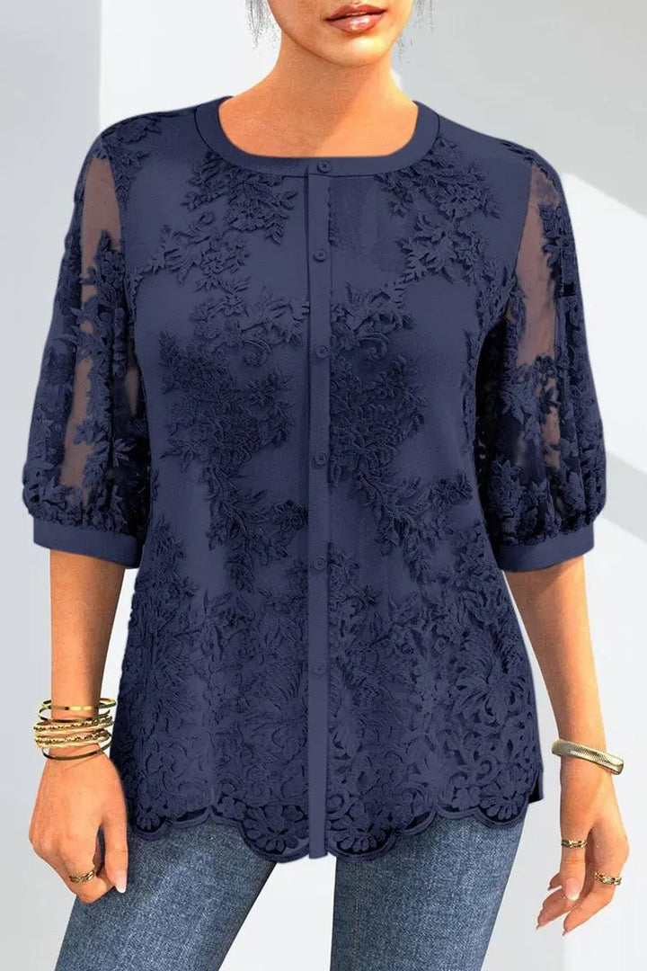 Sophisticated Mesh Sleeve Embroidered Blouse