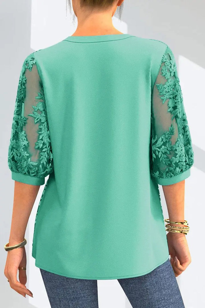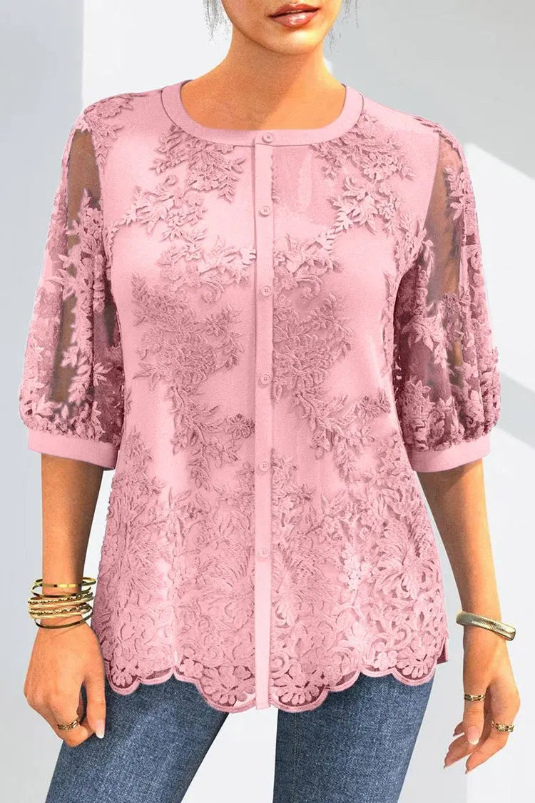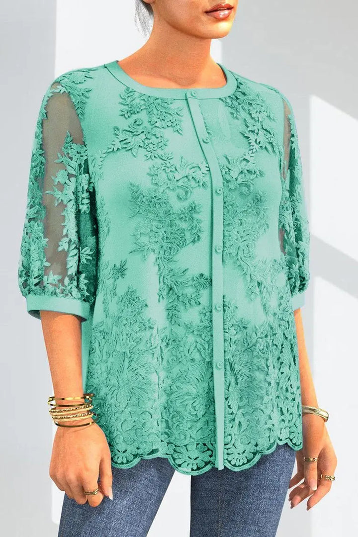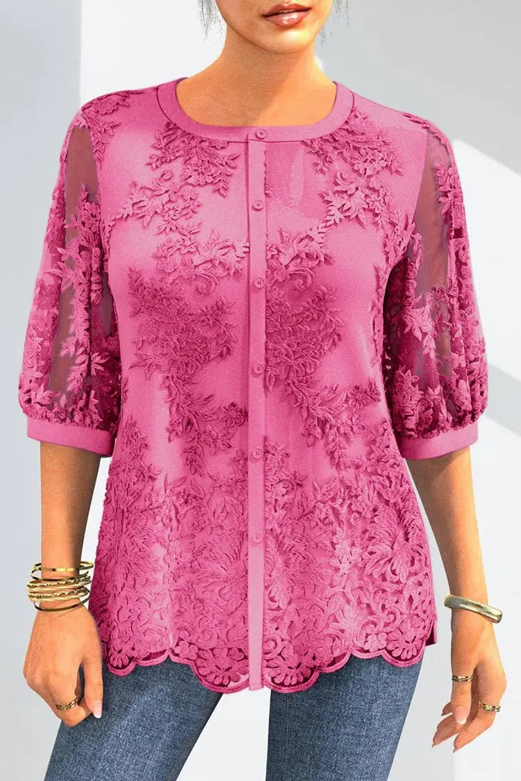 Sophisticated Mesh Sleeve Embroidered Blouse
