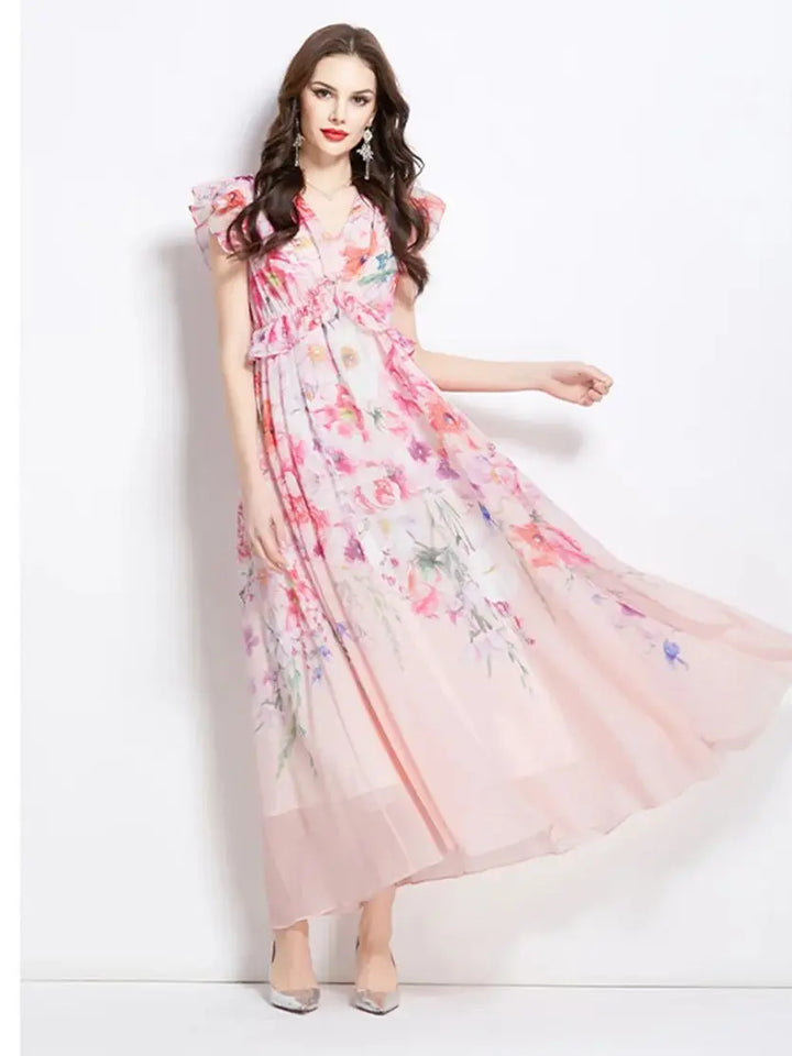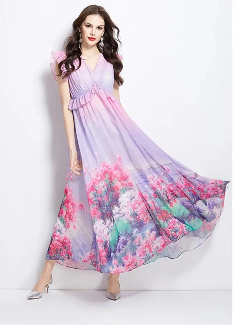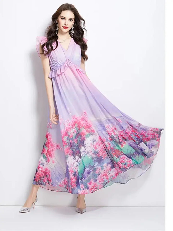 Introducing our Sweet Floral Print Chiffon Dress for women. Made with a soft and lightweight chiffon material, this dress features a beautiful floral print that adds a touch of sweetness to your wardrobe. Perfect for any occasion, this dress is both stylish and comfortable.