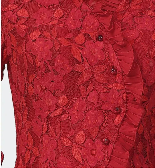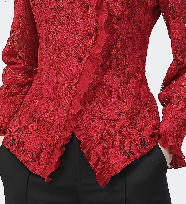 Red Floral Embroidered Slim Fit Blouse