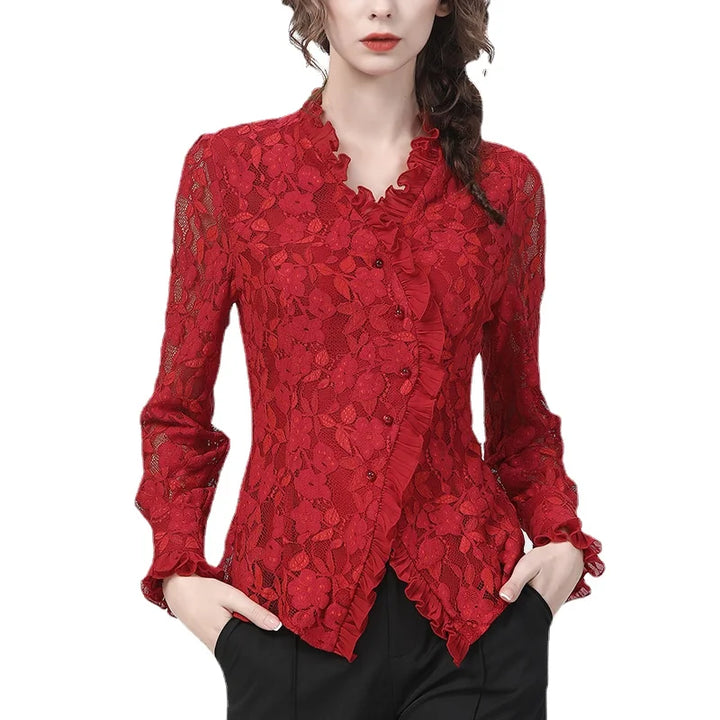 This Vintage Slim Fit Women's Lace Blouse effortlessly combines vintage charm with a flattering slim fit. The delicate lace adds a touch of femininity to any outfit. Made with quality materials, this blouse is perfect for any occasion. Add a touch of elegance to your wardrobe with this timeless piece.